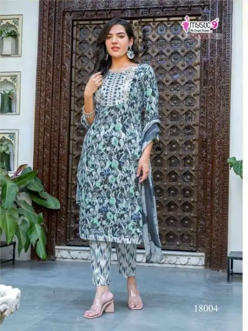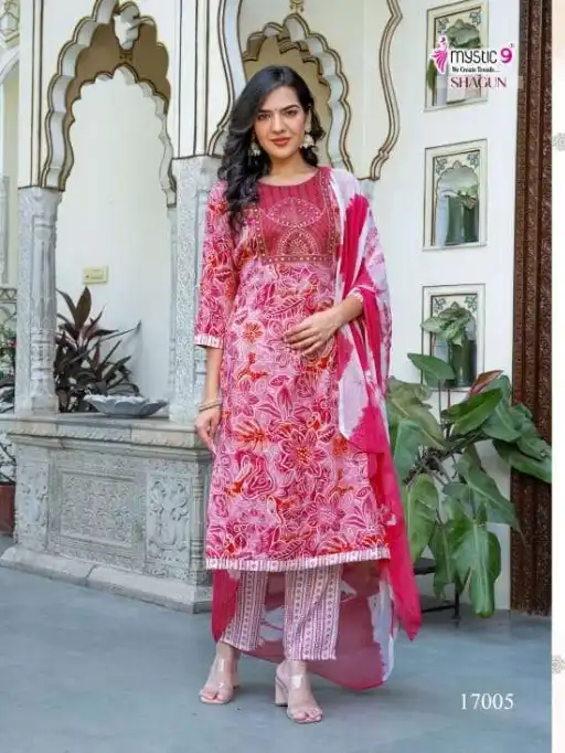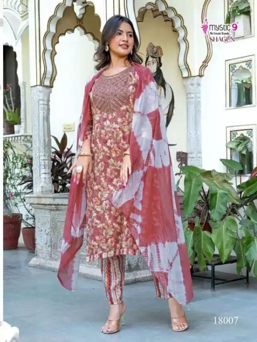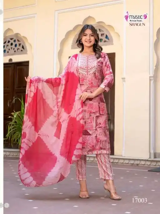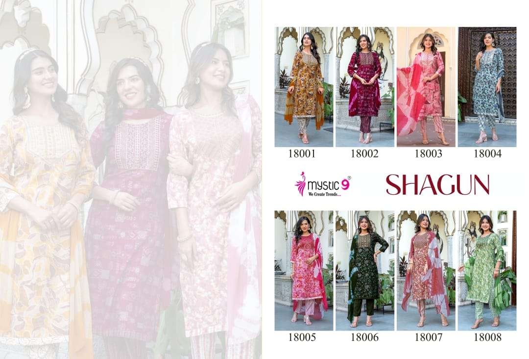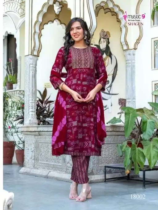 Mystic 9 Shagun Vol 18 Wholesale Rayon Print Kurti Bottom Dupatta.