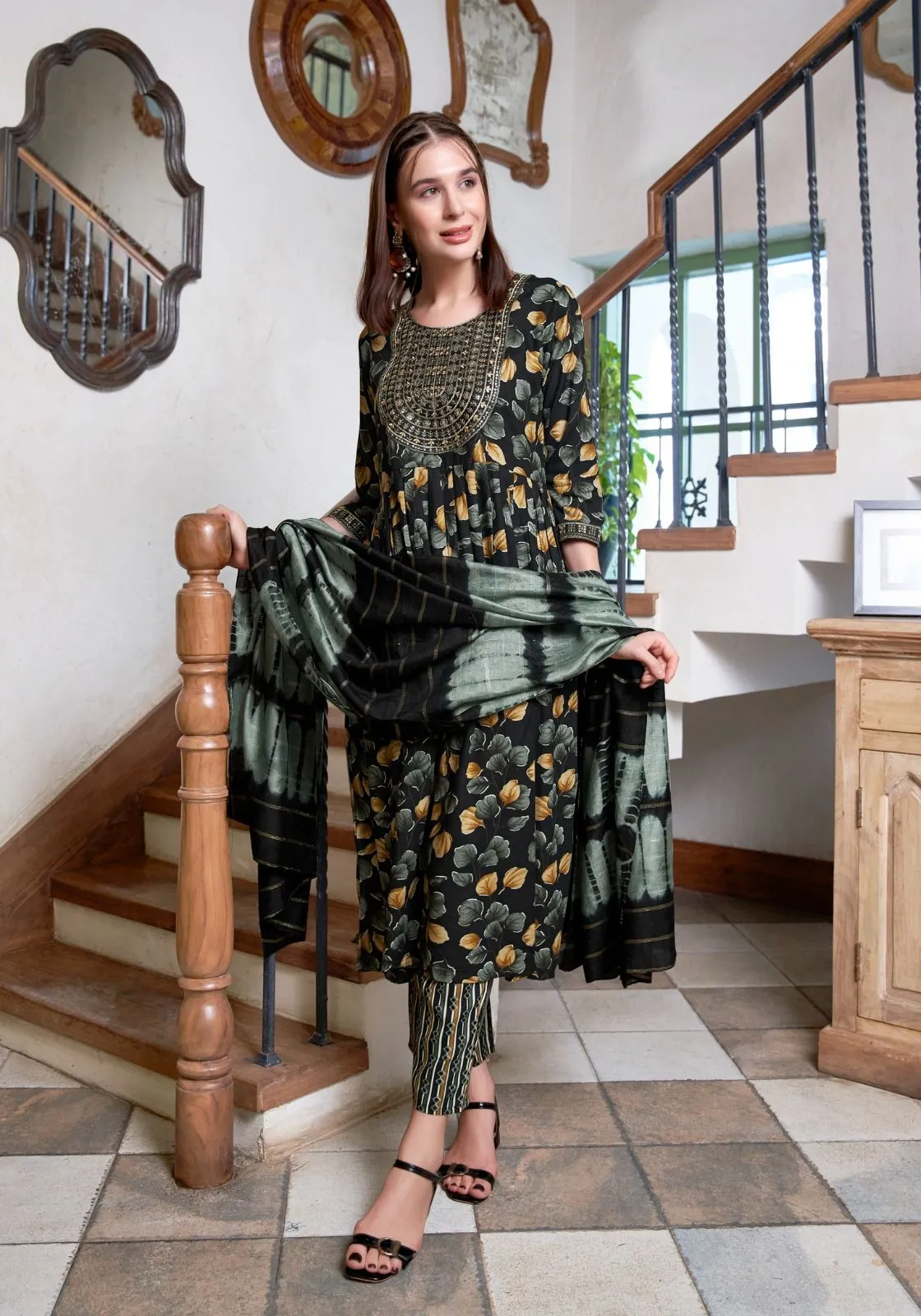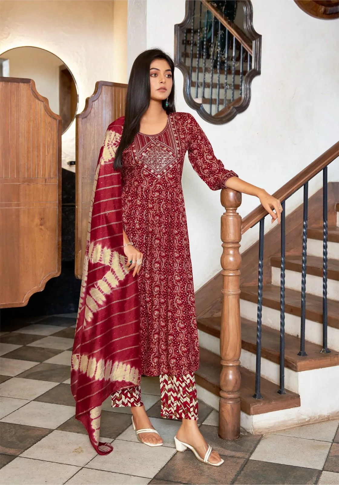 | Top | Rayon Foil Print Stitched With Embroidery And Sleeve Locked And Embroidery |