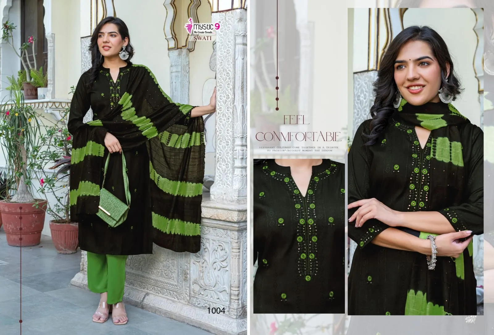 | Details | Top : Premium Quality Rayon Designer Dobby with Sleeves Lock & Embroidery on Front & Sleeve | Bottom : Premium Quality Rayon Straight Pant with Interlock & Exclusive Pocket | Dupatta : Chanderi Immersed in Dual Hand Tie-die |