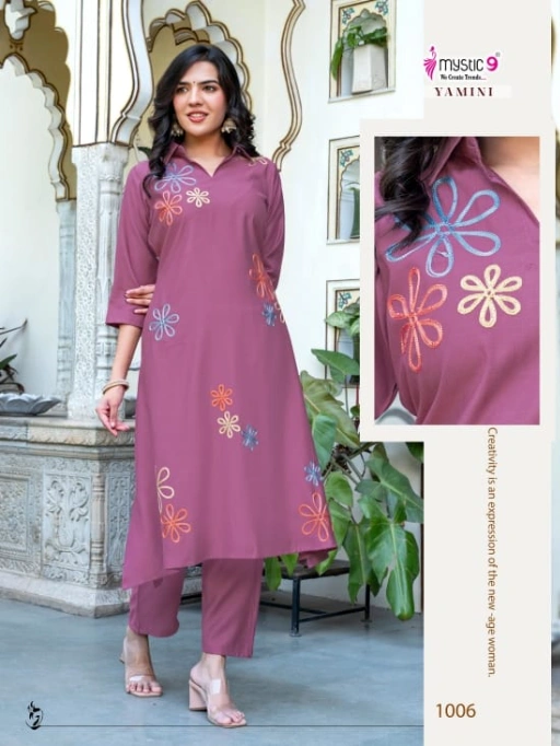 Buy Mystic 9 Yamini Vol 1 vertical Aari work co-ord sets at a wholesale rate.