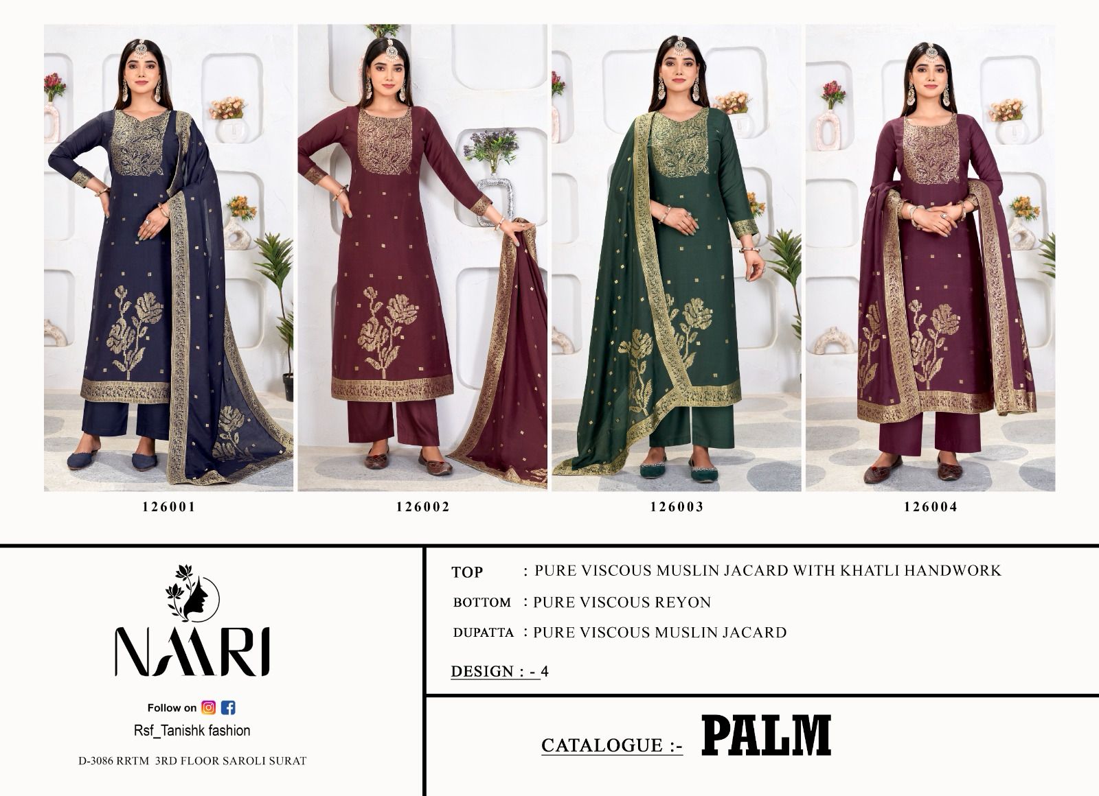 Naari Palm Pure Muslin Jacard Wholesale Designer Salwar Suit Collection