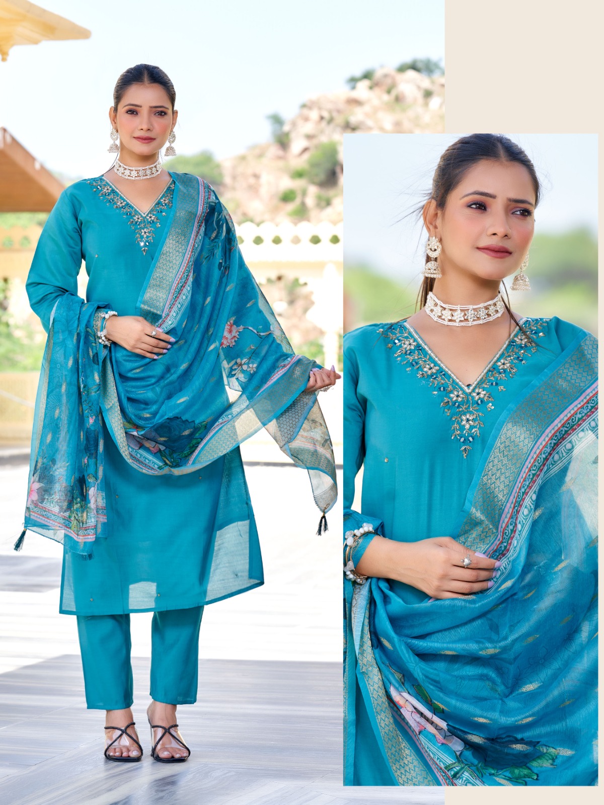 | Dupatta | Roman Silk With Inner ANd Hand WORK |