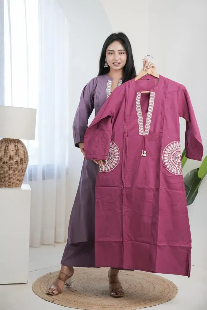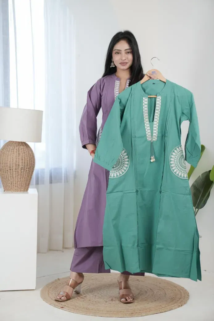 | Details | Top/bottom :- Pure Dhabhu Cotton with Embroidery Work | Size Set :- (m to 3xl) |
