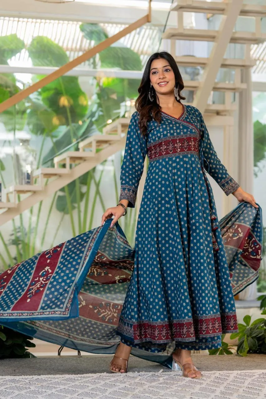 | Details | Top/bottom/dupatta :- Cotton Beautiful Anarkali with Palzo and Dupatta | Size Set :- (38 to 46) |