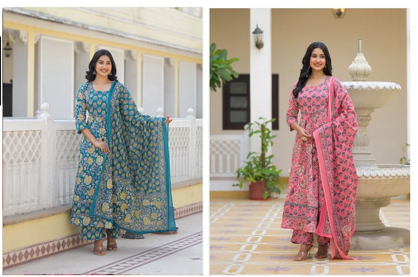 | Details | Top/bottom/dupatta :- Beautiful Cotton Printed Kalidar Anarkali Kurti with Pant and Dupatta | Size Set :- (38 to 44) |