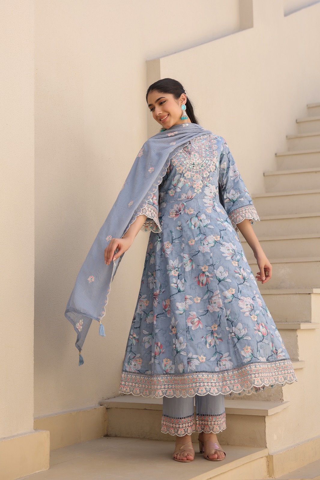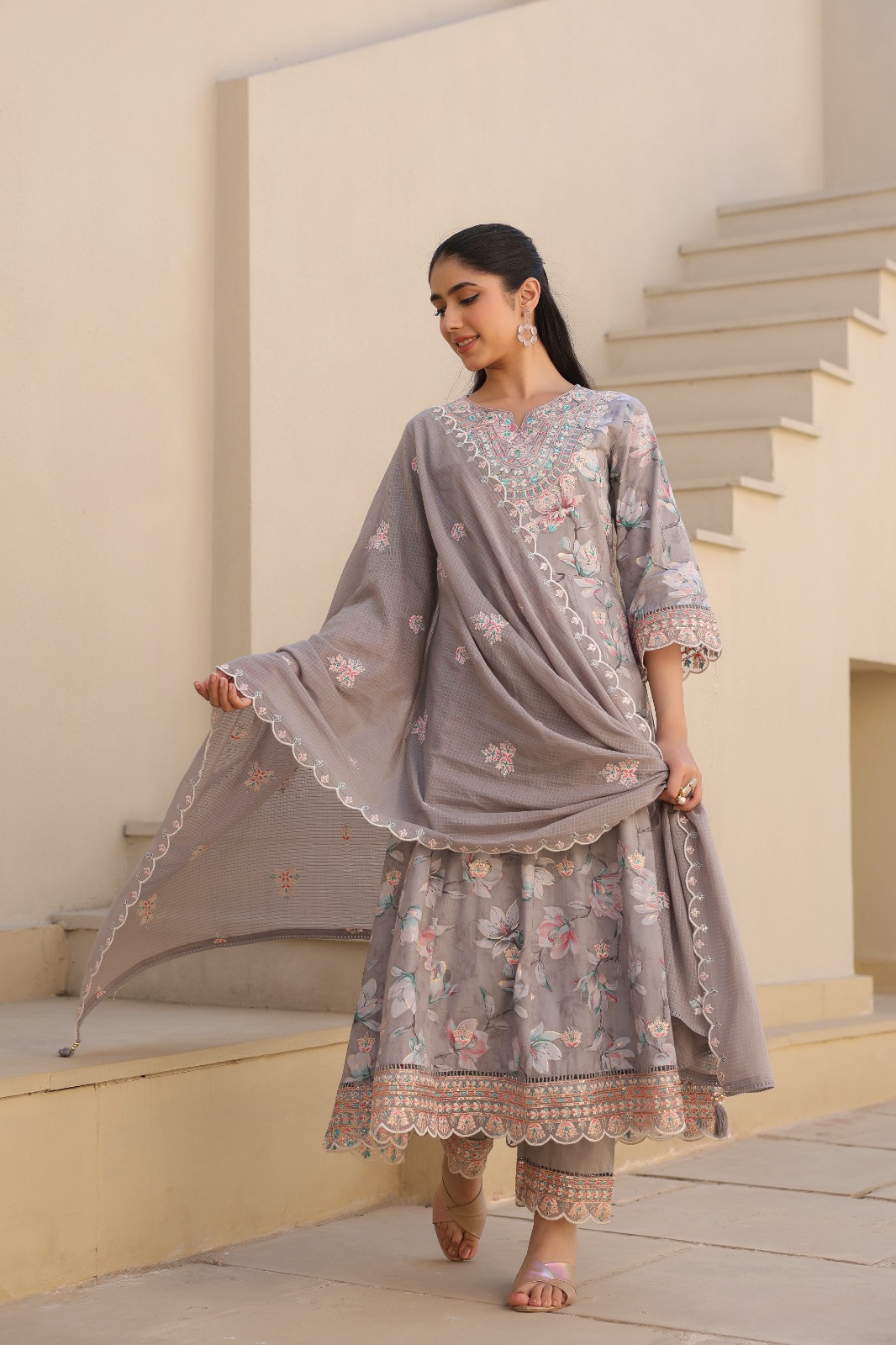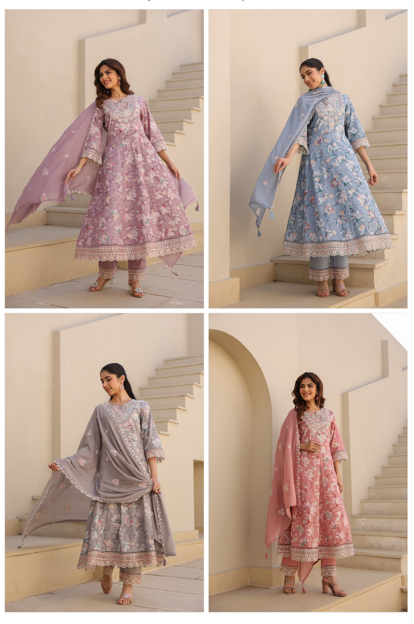 Naisha K 541 Cotton Stylish Wear Anarkali And Bottom Dupatta Set