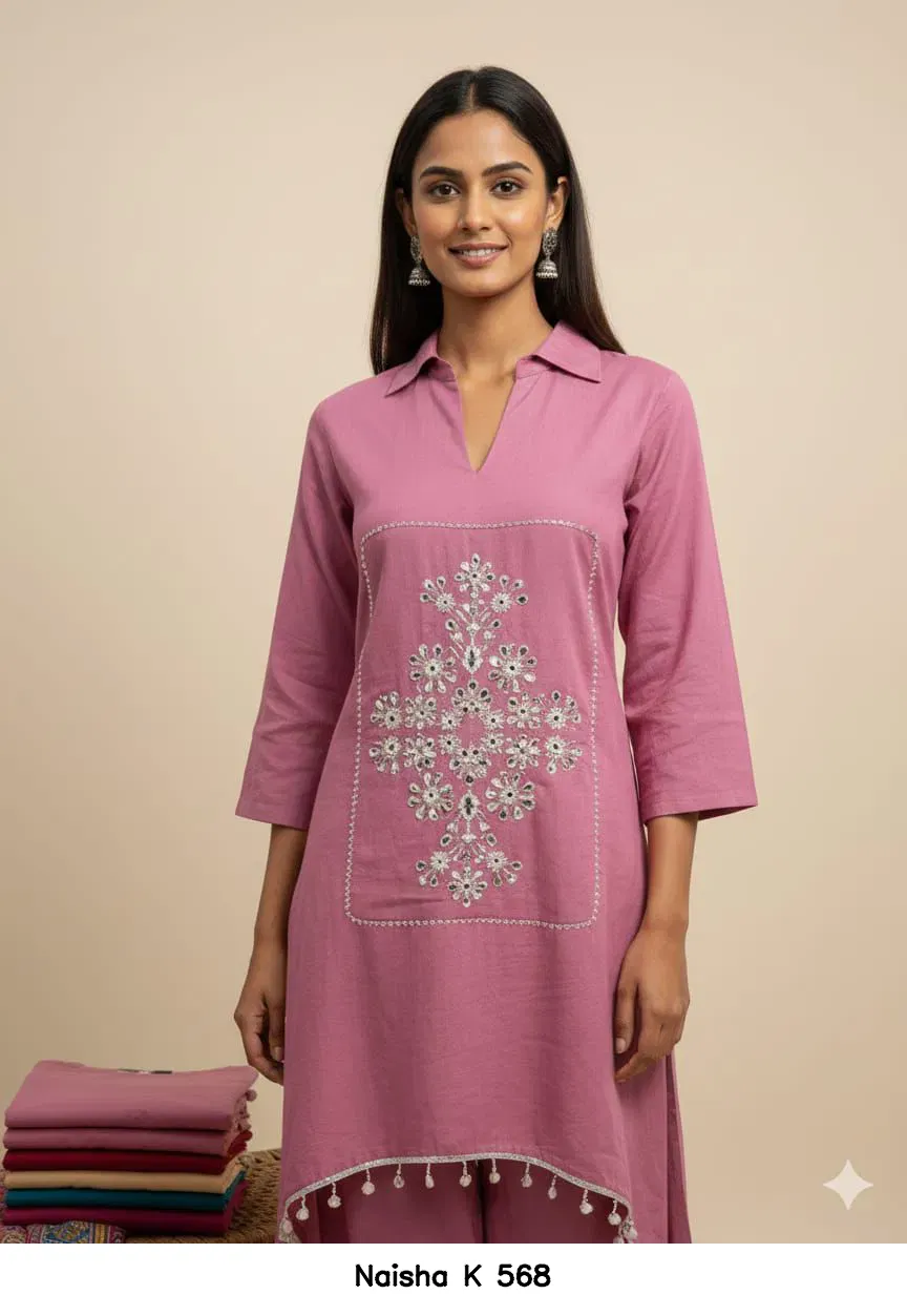 | Details | Top/bottom :- Cotton Flex Real Mirror Work Embroidered Co Ord Set | Size Set :- (38 to 48) |