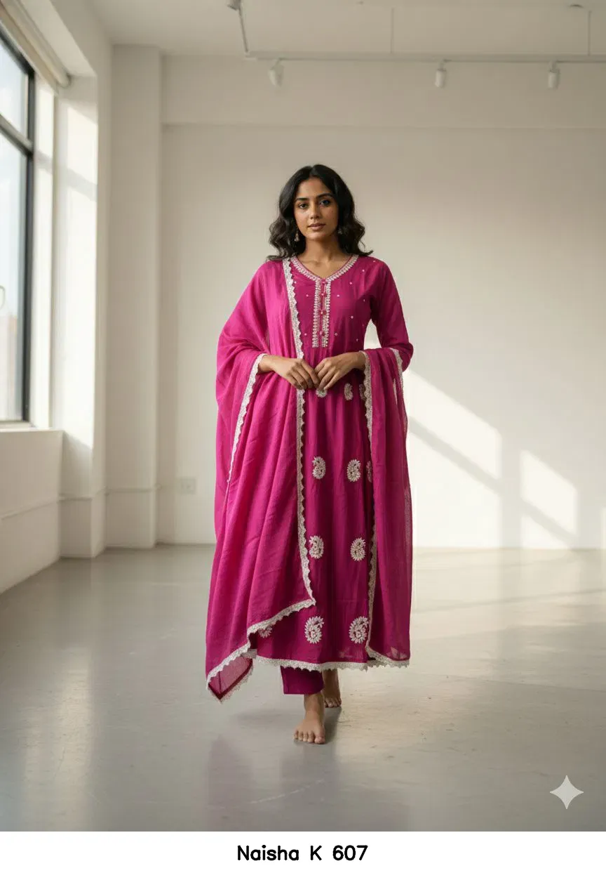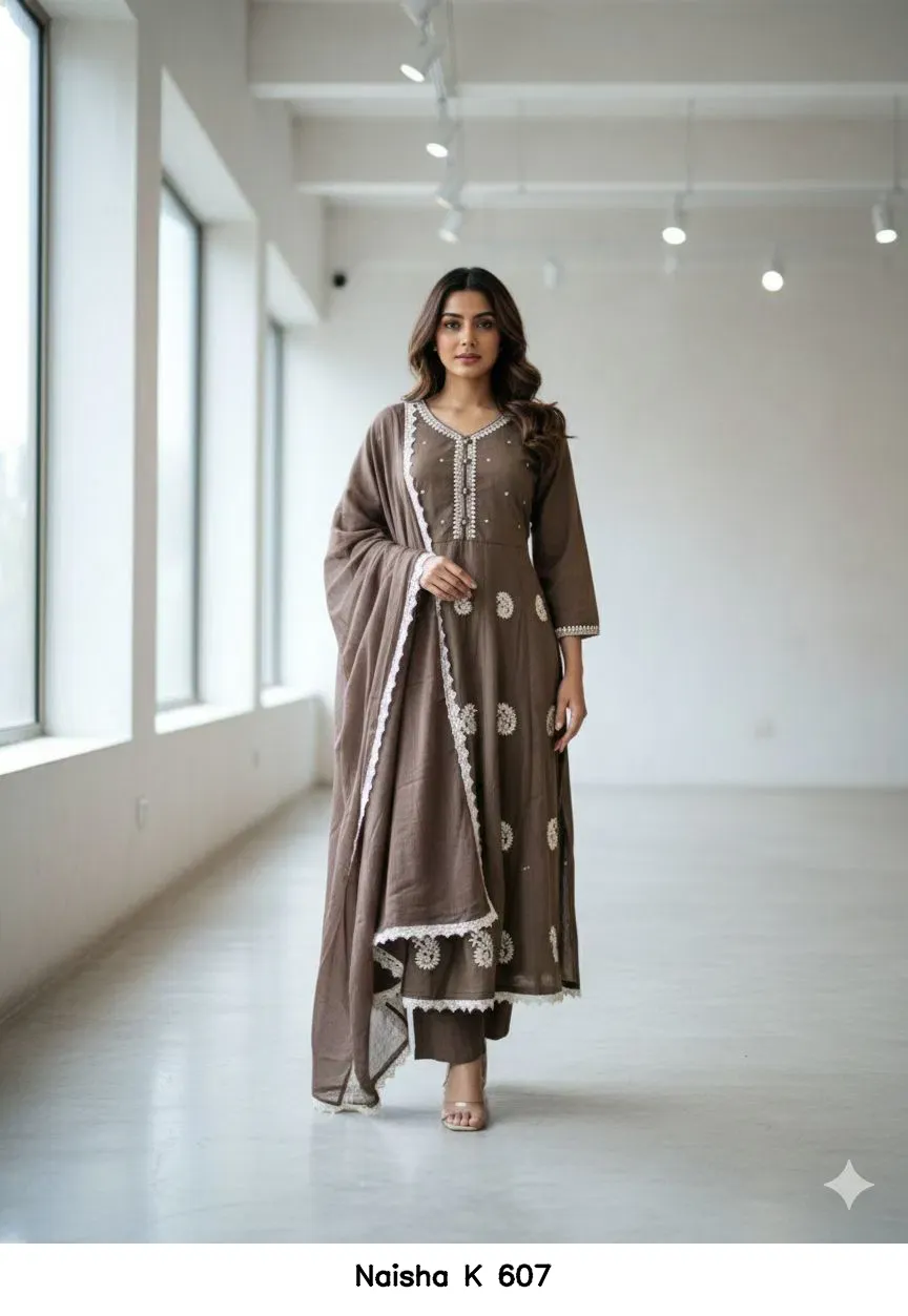 | Details | Top/bottom/dupatta :- Mulmul Embroidered Anarkali Sets with Attached Lining | Size Set :- (38 to 46) |