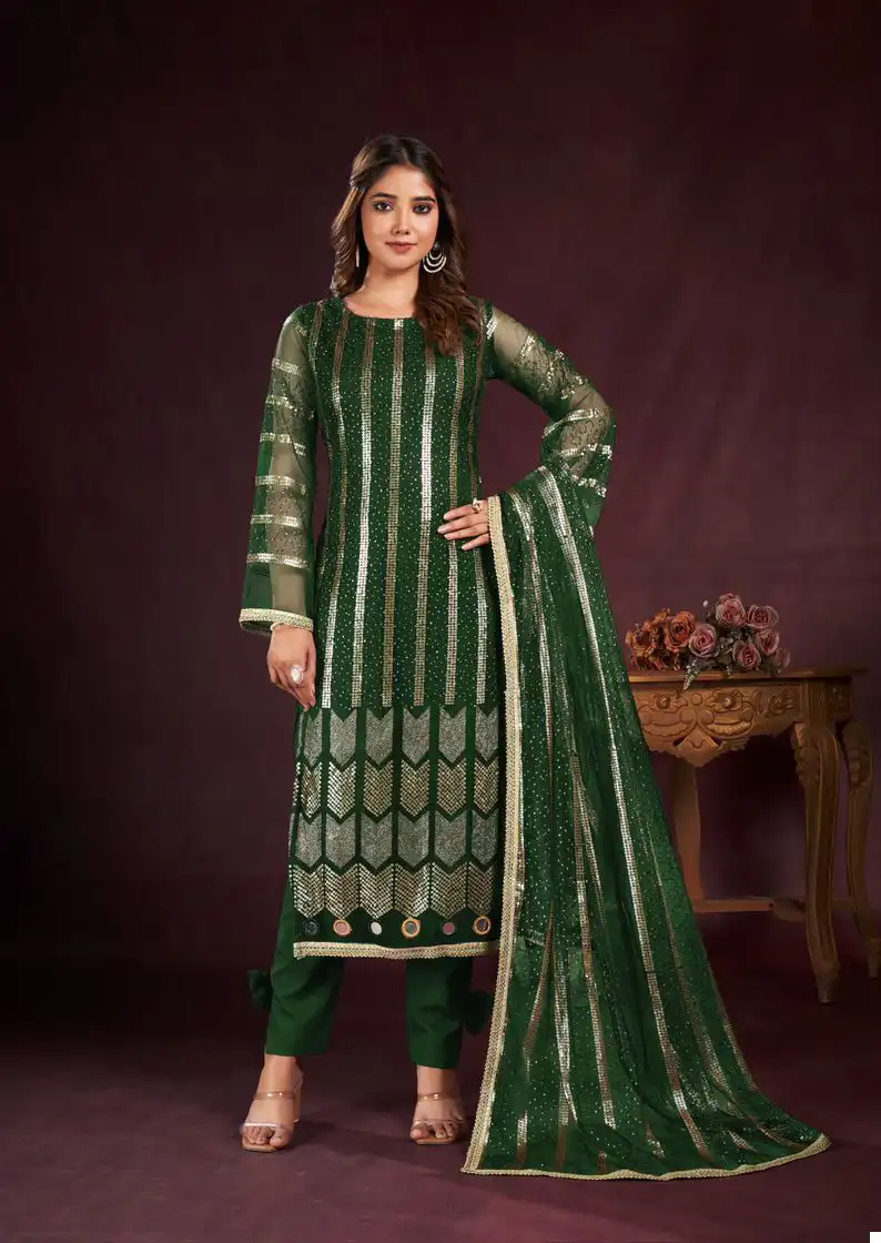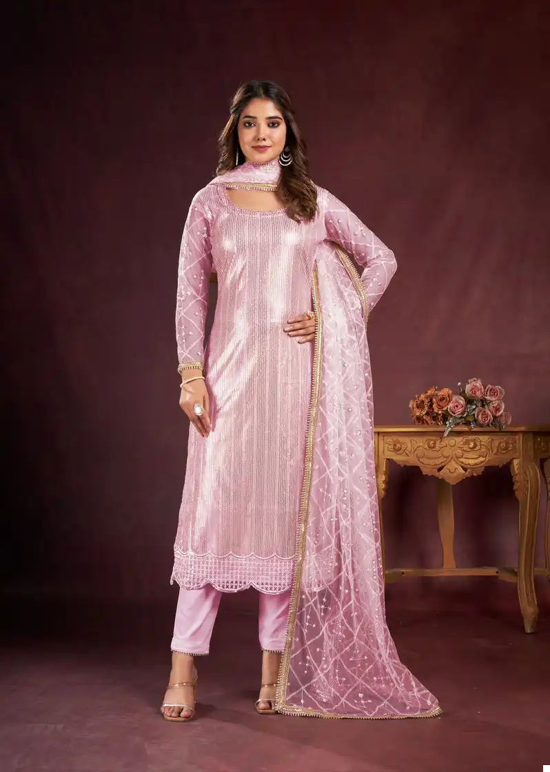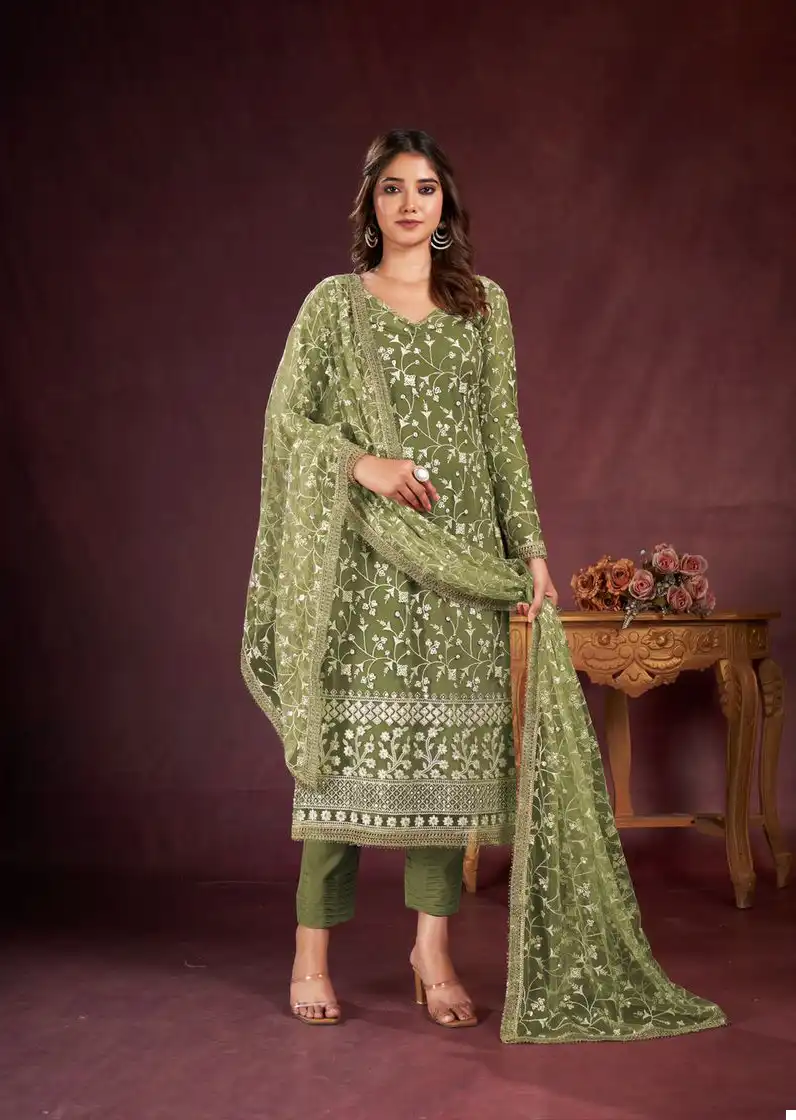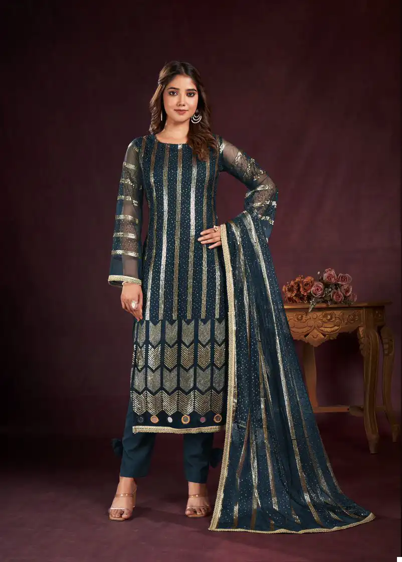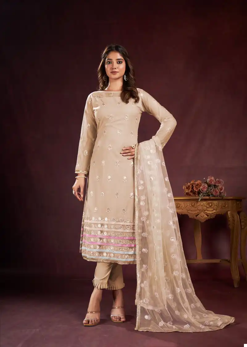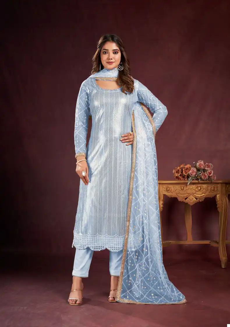 - Dupatta: Complete your look with our Butterfly Net Dupatta, featuring tone-to-tone threadwork and sequence embroidery, enhanced with readymade fancy lace. With a length of 2.5 meters, this dupatta adds a finishing touch of elegance to your ensemble.