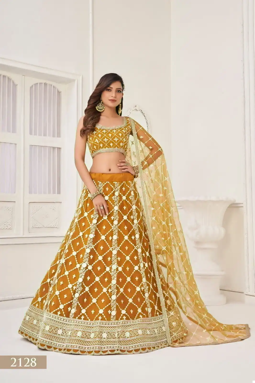Dive into the realm of luxury with this exquisite lehenga, a garment that speaks volumes of opulence, priced at an average of ₹2975. This ensemble is a celebration of intricate craftsmanship and ethereal fabric quality, designed to make you the epitome of grace at any high-end affair.