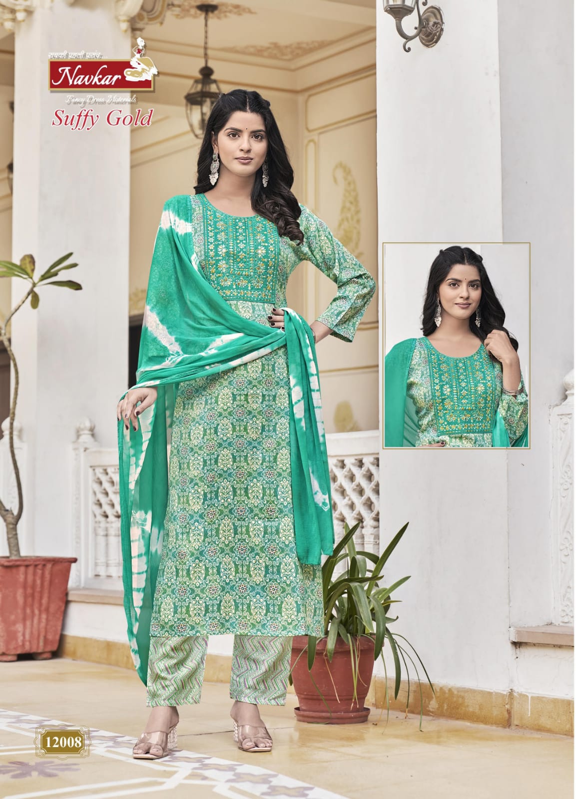 Navkar Suffy Gold 12 Rayon Foil Printed Wholesale Readymade Salwar Suit Catalog