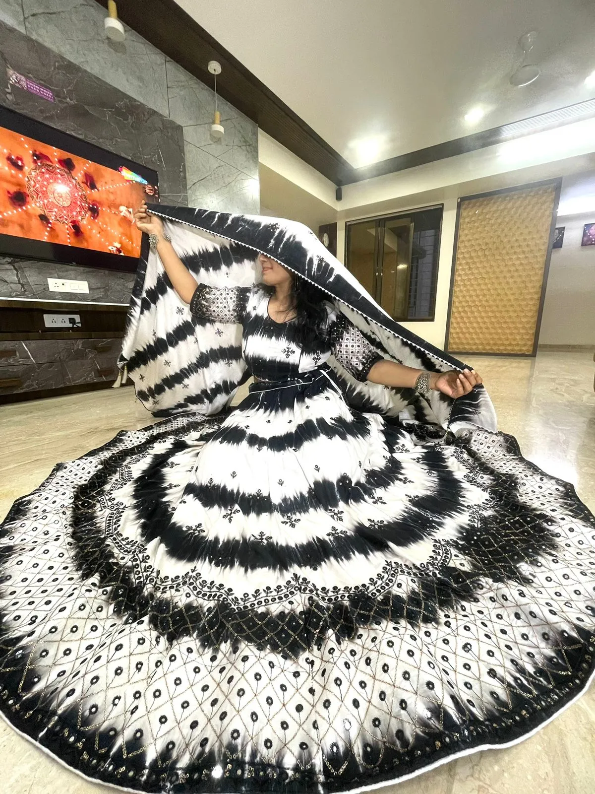 | Lehenga | Rayon With Full Foil Mirror + Thread Work | Flair: 6 Mtr Approx |
