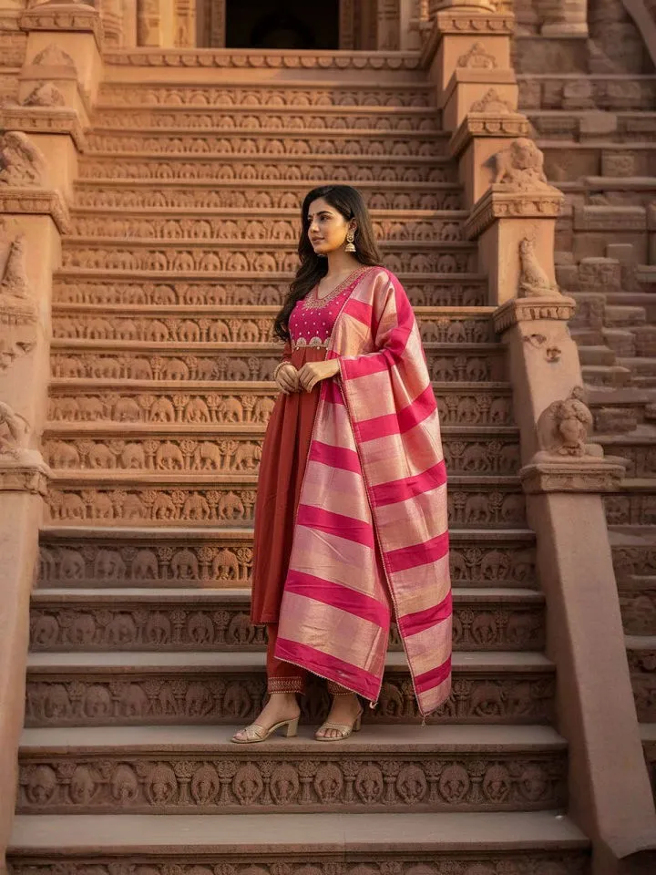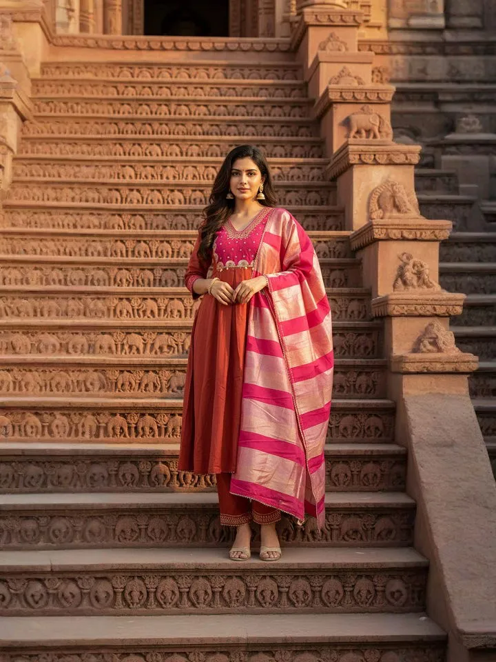 | Details | Fabric :- Top – Silk Blend Bottom – Silk Blend Dupatta – Jacquard MOQ – 5 Work – Embroidery Size – S to Xxl |