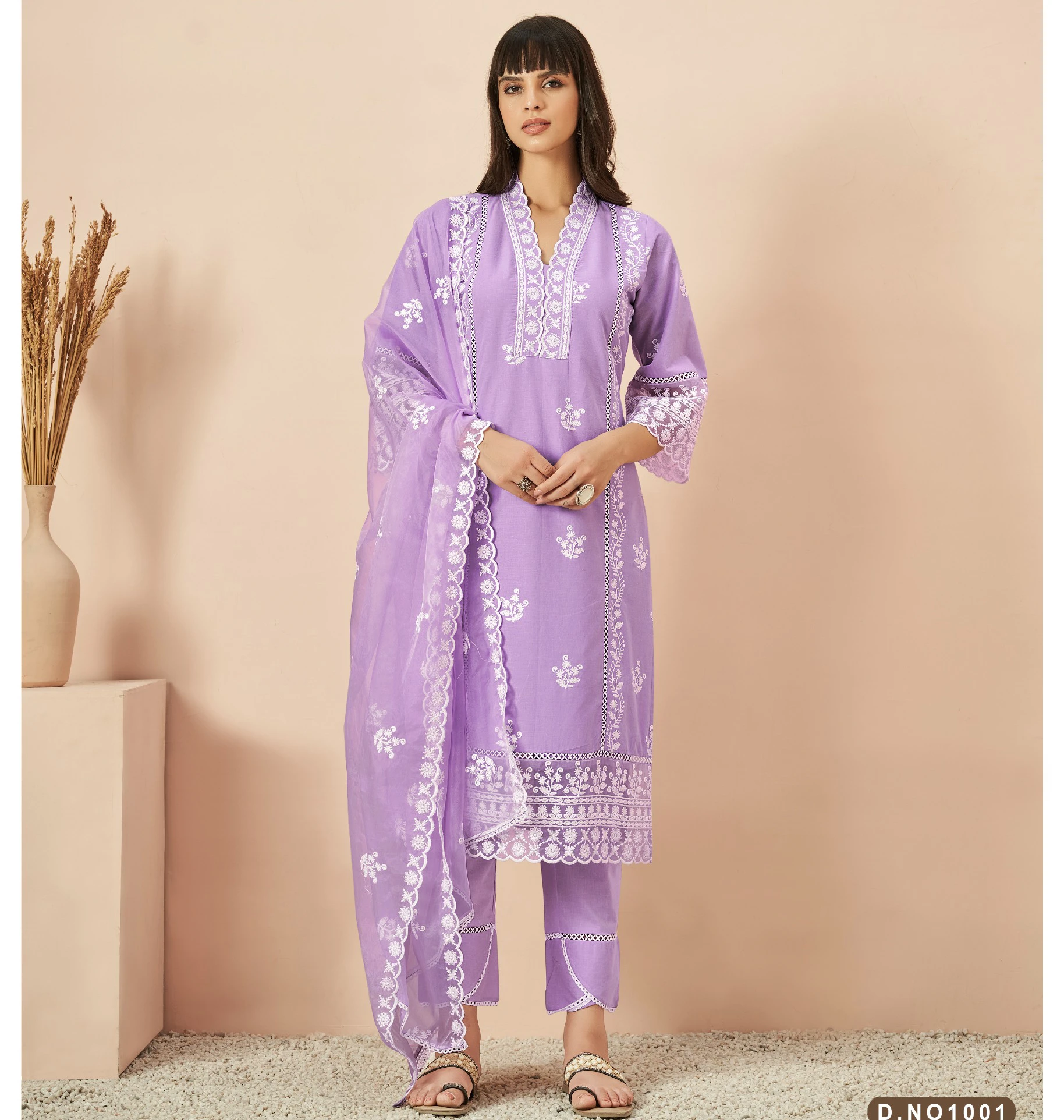 - Dupatta: Heavy Cotton Cutwork Dupatta (Cut – 2.40 Mtrs)