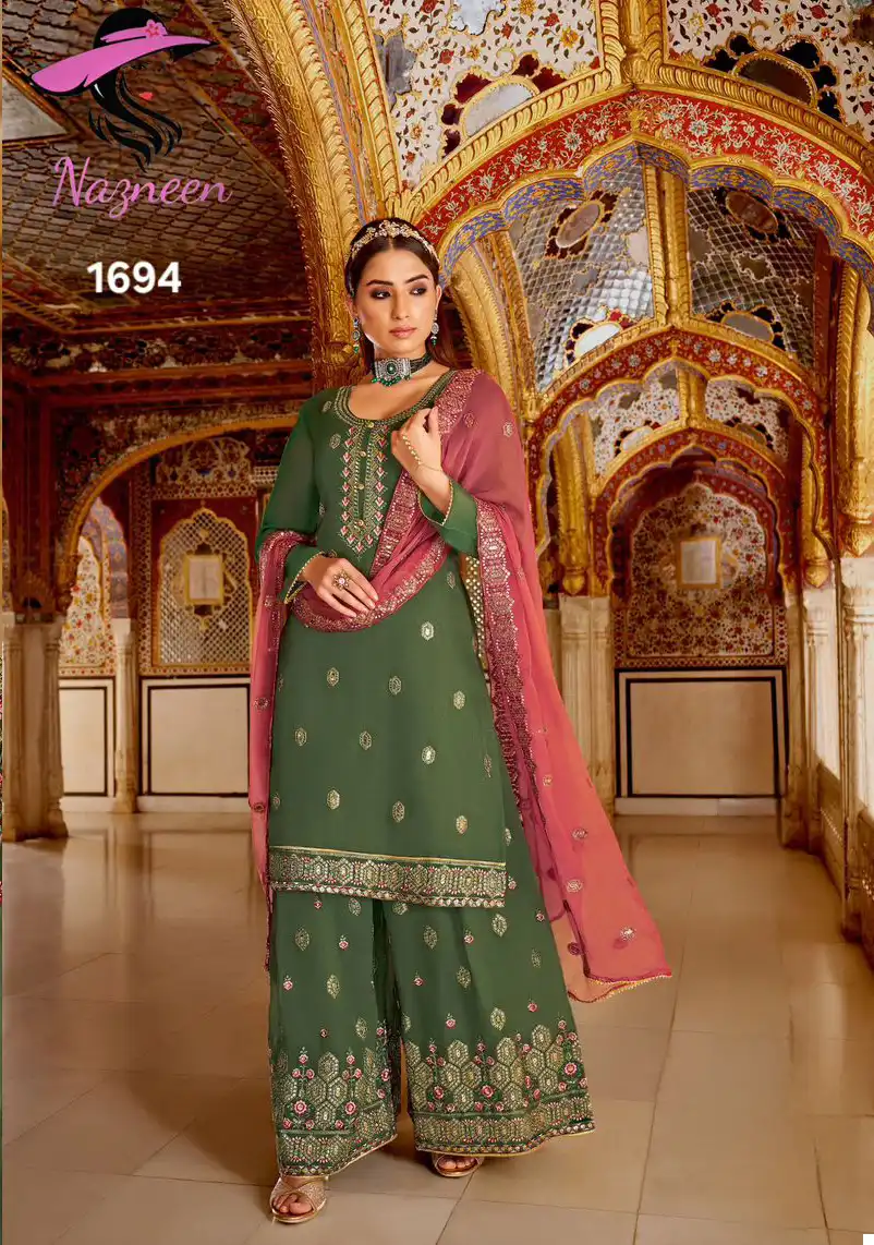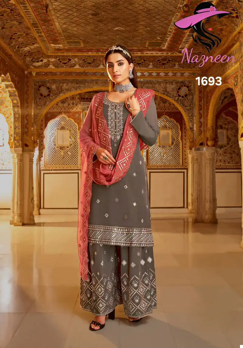 Design: This dress material set features a timeless design that combines classic elegance with contemporary style. The top and bottom are adorned with intricate embroidery and embellishments, enhancing the overall aesthetic appeal. The Santoon inner ensures a comfortable fit, while the Dupatta adds a touch of grace and sophistication.