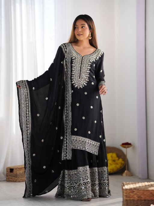 🔗 Explore More: Chinnon Silk Sharara Suit