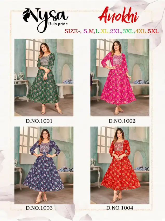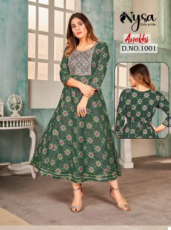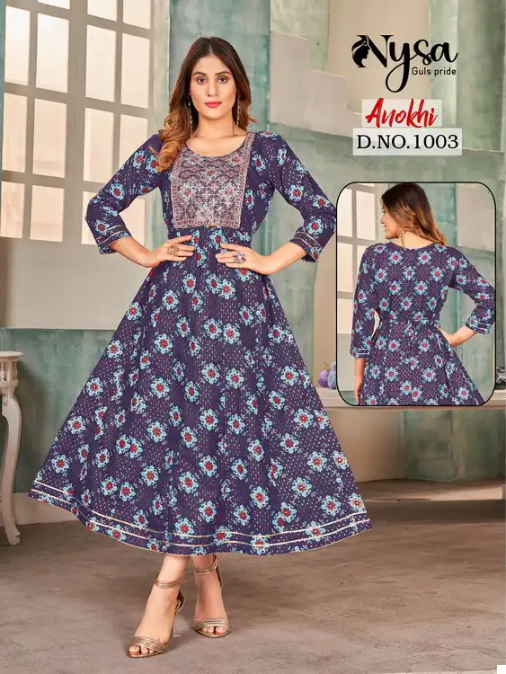 Nysa Anokhi Semi Capsule Foil Print Wholesale Anarkali Kurtis Catalog