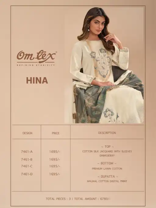 Omtex Hina Cotton Silk Premium Salwar Suits Wholesale Catalog.