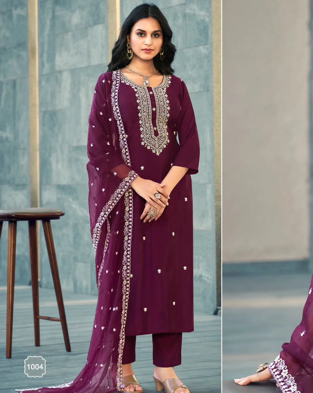 - Top: Viscose Roman Silk with Heavy Embroidery and Hand Work