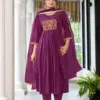 | Top | Premium Viscose Roman Silk With Inner 3/4 Th Sleeves Heavy Embroidery Work With Pocket |