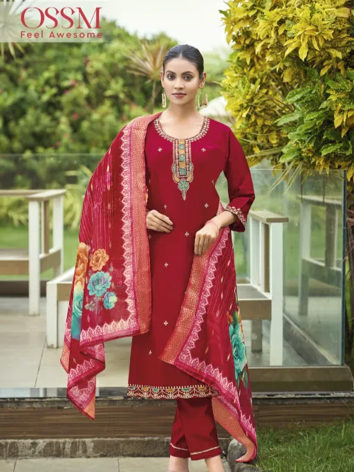 Ossm Meher Wholesale Viscose Roman Silk Readymade Suit Collection.