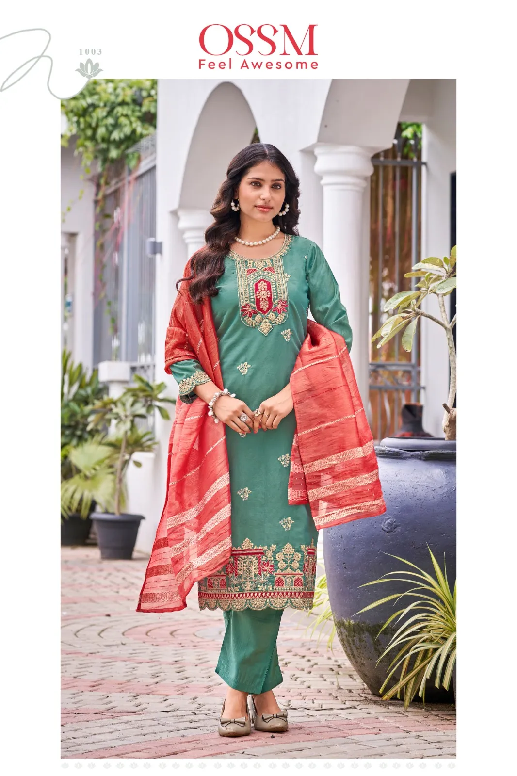 Ossm Mishu Fancy Roman Simmer Wholesale Readymade Salwar Suit Collection