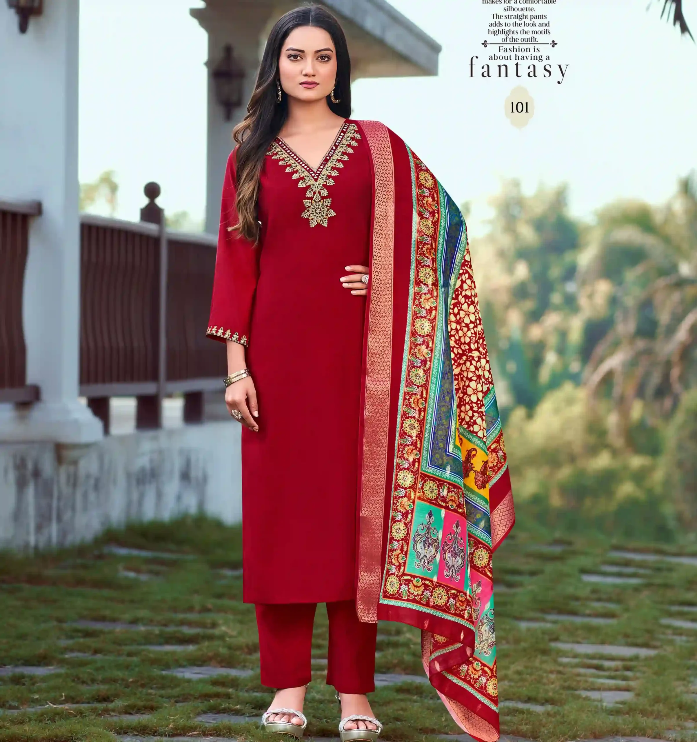 - Each piece is priced at 825, reflecting the quality and luxurious nature of the Pure Viscose Roman Silk fabric and Digital Jacquard Dupatta.
