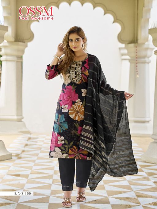 OSSM Sanvari Wholesale Vetican Foil Print Kurti with Bottom Dupatta.