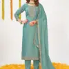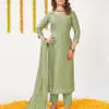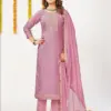 Elevate your ethnic fashion with this stunning Shimar Silk Suit Set featuring heavy sleeve embroidery and a pure Swarovski diamond dupatta. This set is perfect for special occasions and celebrations, offering a blend of elegance and sophistication.