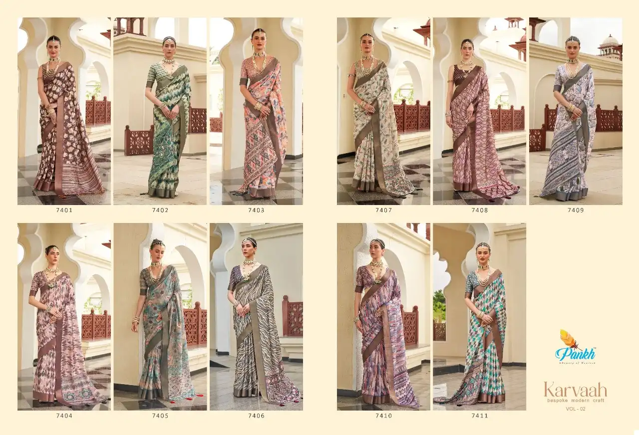 Introducing Pankh Karvaah Vol-2, a collection of exquisite Gotha Silk Wholesale Sarees that seamlessly blend tradition with contemporary elegance. Crafted from luxurious Gotha Silk, these sarees feature rich textures and vibrant colors, perfect for festive occasions and weddings. The intricate embroidery and embellishments showcase the artistry of Indian craftsmanship. With a diverse range, Pankh Karvaah Vol-2 offers a versatile wholesale catalog, ensuring your clientele experiences timeless beauty and cultural heritage in every saree. Elevate your ethnic wear collection with these masterpieces that stand out at any event.