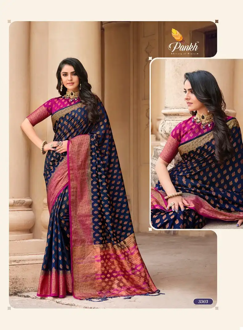 Pankh Ruchi Silk Vol-3 Raw Silk Wholesale Saree Catalog of 20 Pcs. We deal in Kurtis, Sarees, Dresses Materials, Leggings, and Designer Salwar Kameez.