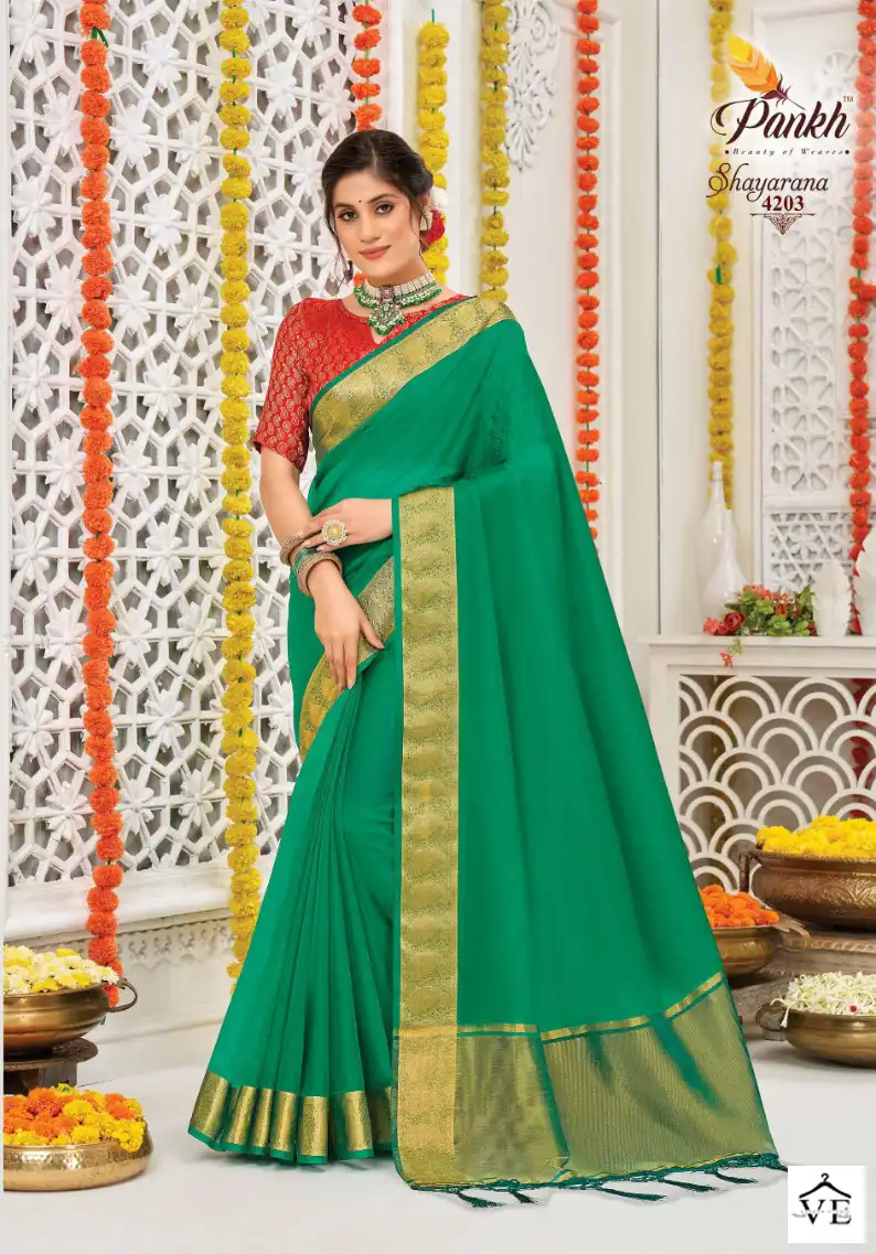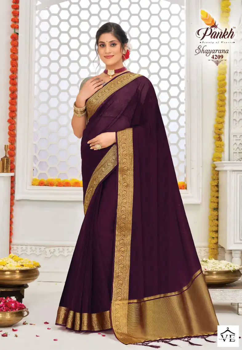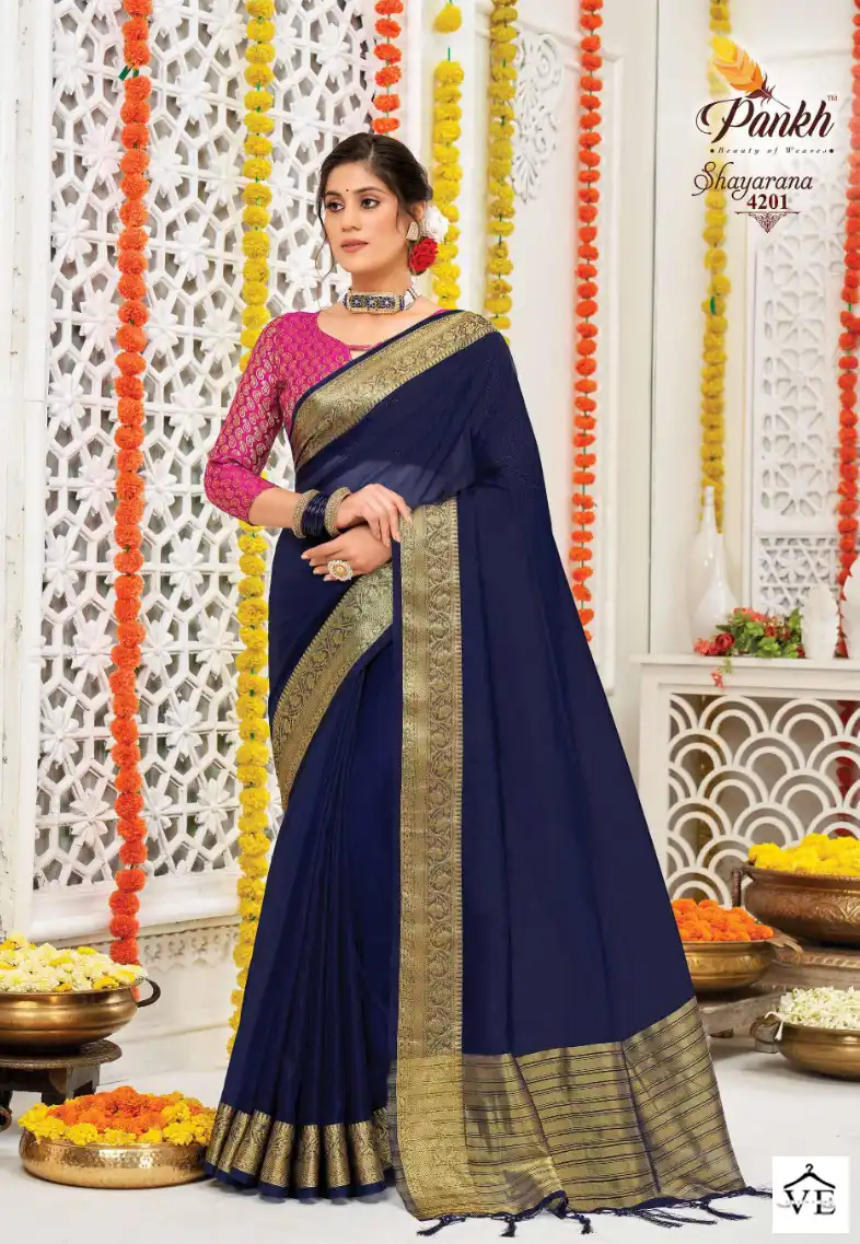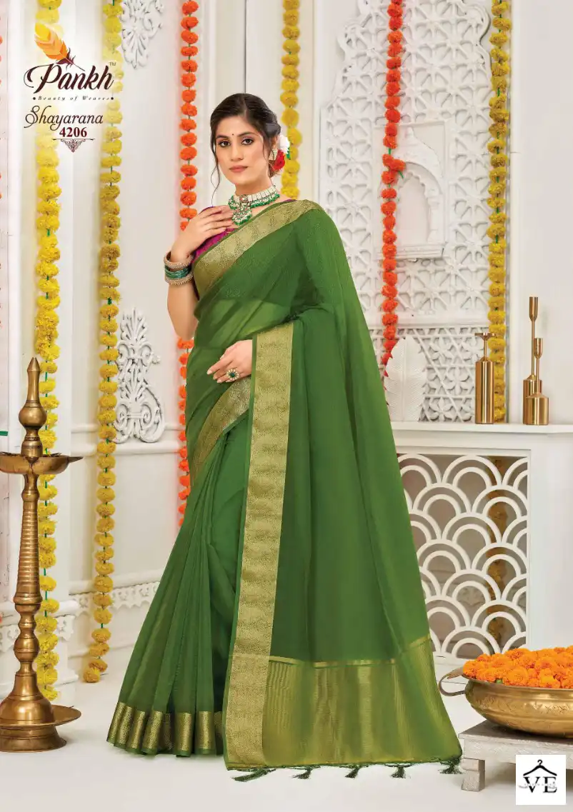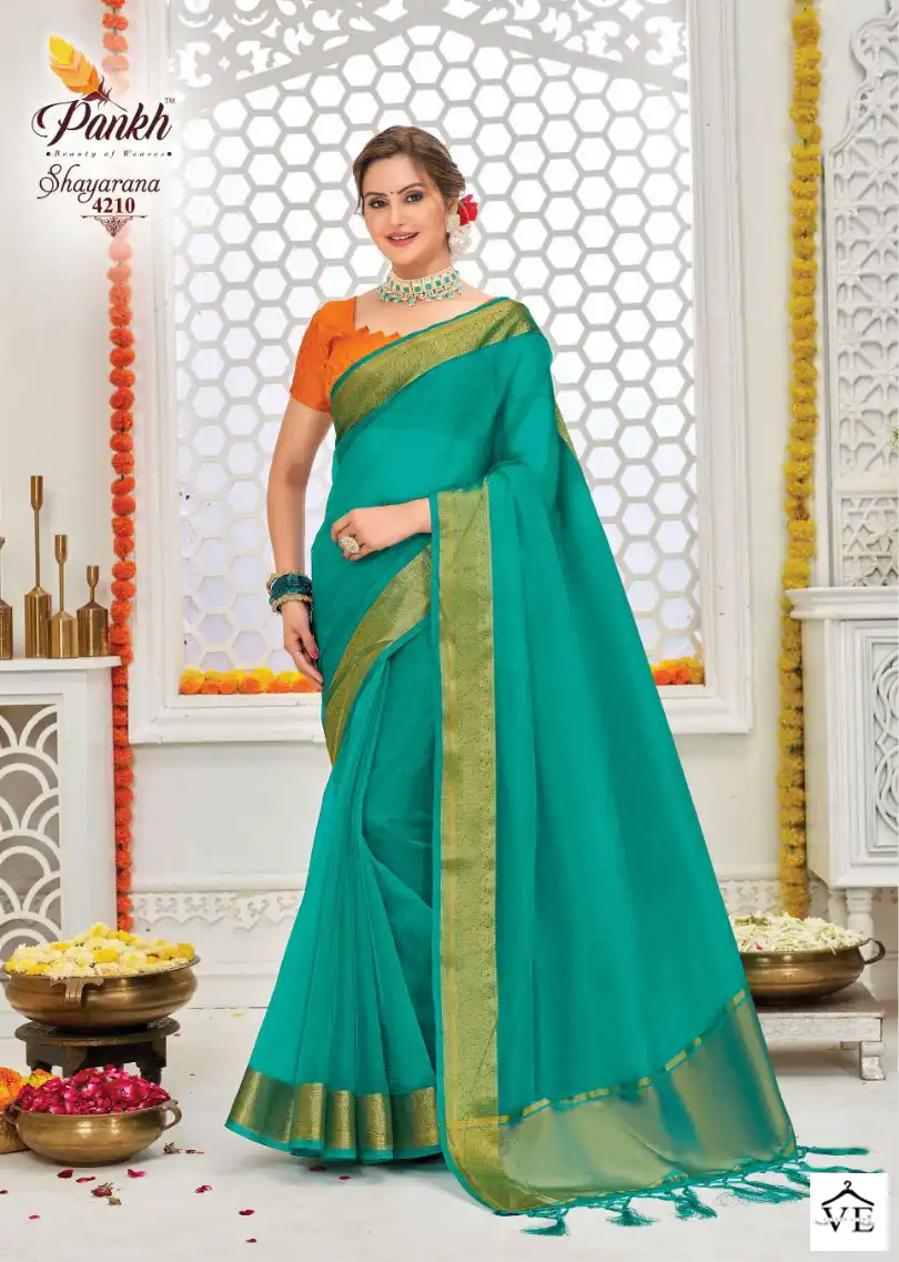 Pankh Sharyana Vol-1 Organza Silk Wholesale Saree Catalog of 10 Pcs. We deal in Kurtis, Sarees, Dresses Materials, Leggings, and Designer Salwar Kameez.