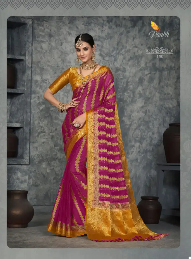 - Wholesale Sarees Catalog: Tailored for retailers and fashion connoisseurs, this wholesale catalog presents a curated selection of Suchitra Silk Organza Sarees from Pankh. It’s an excellent opportunity to enhance your inventory with high-end ethnic wear.