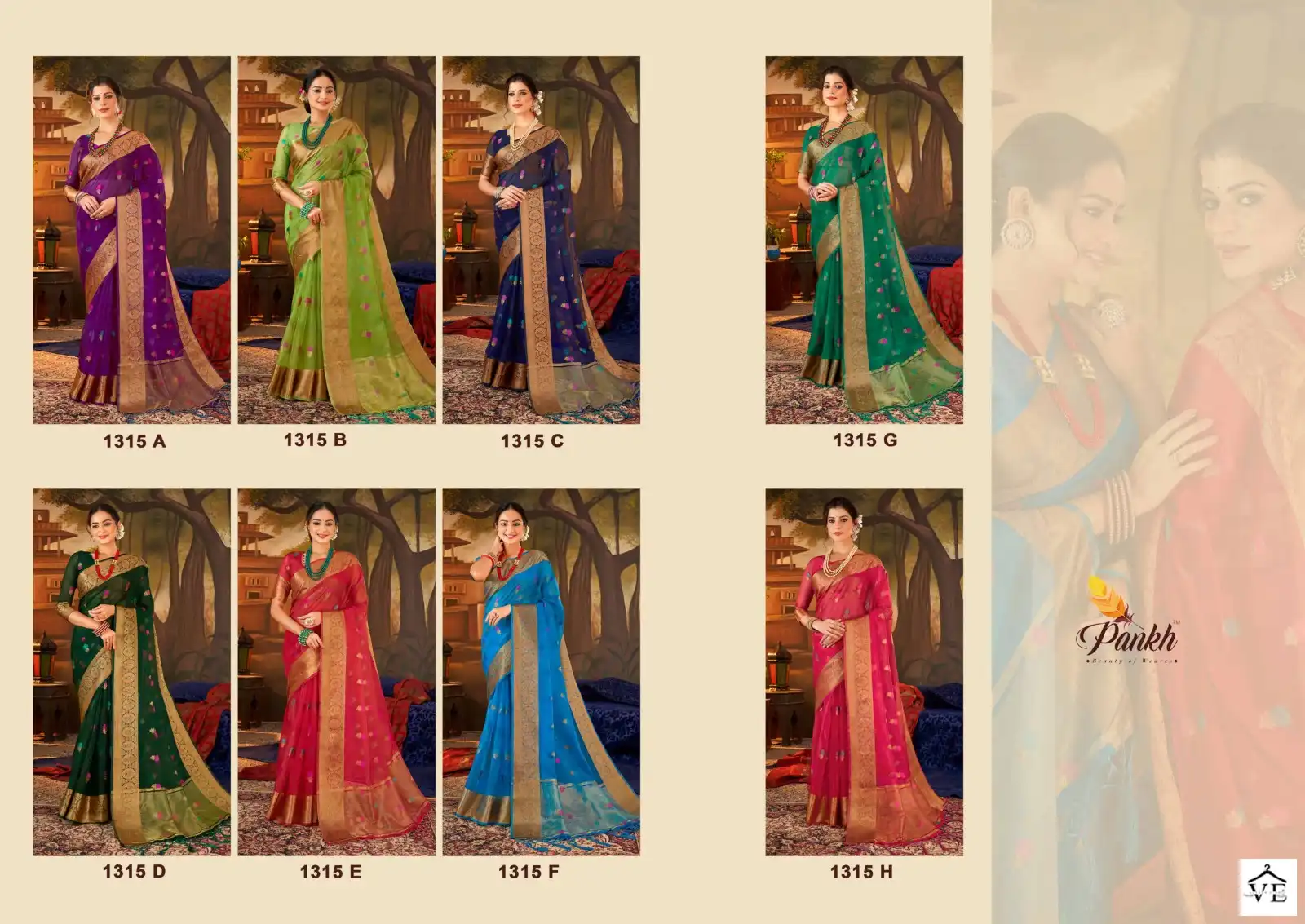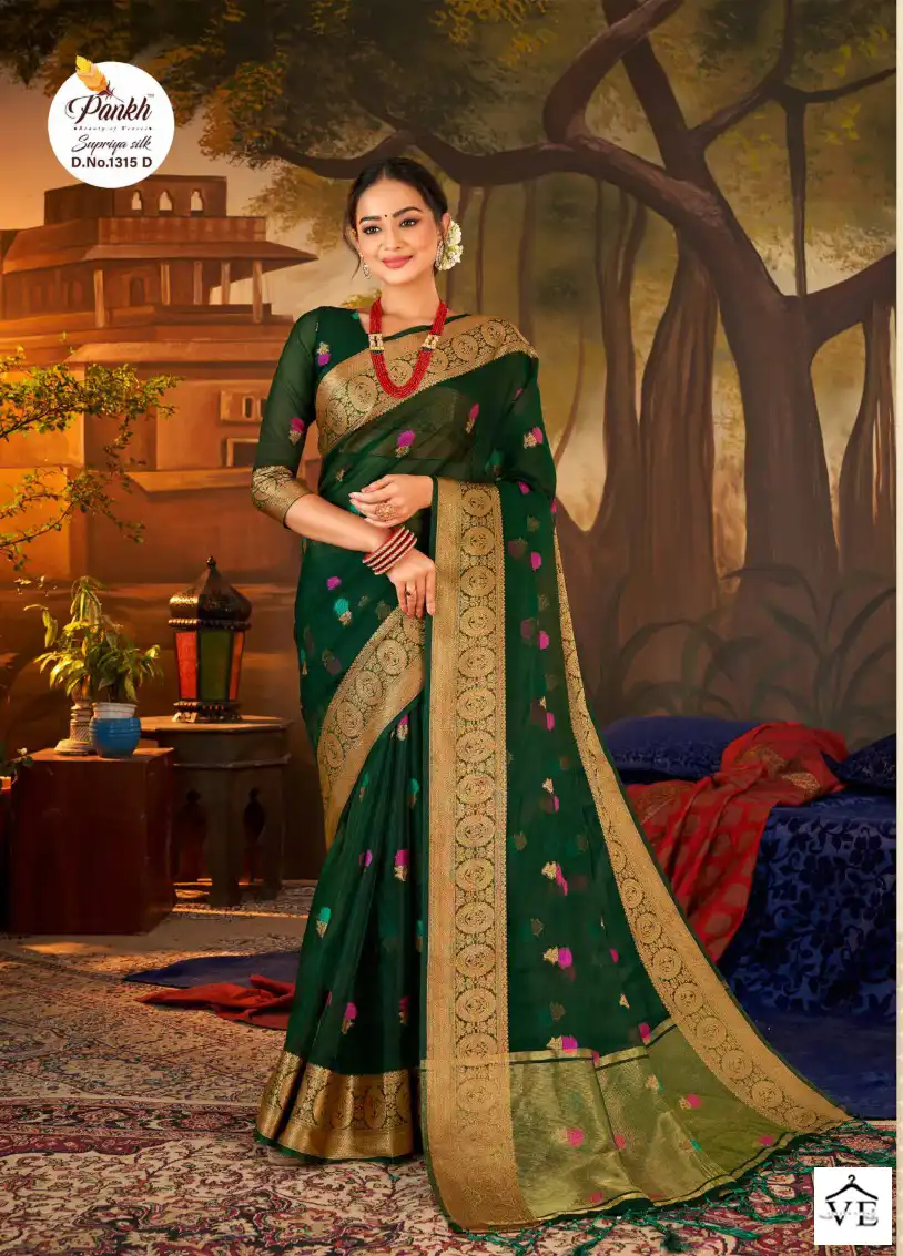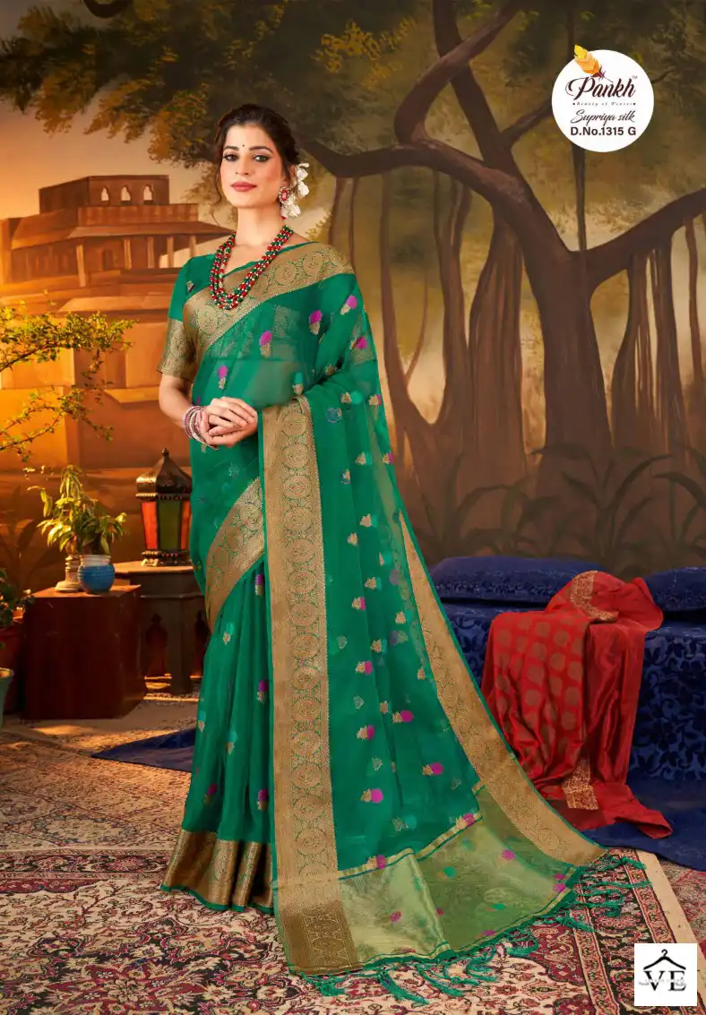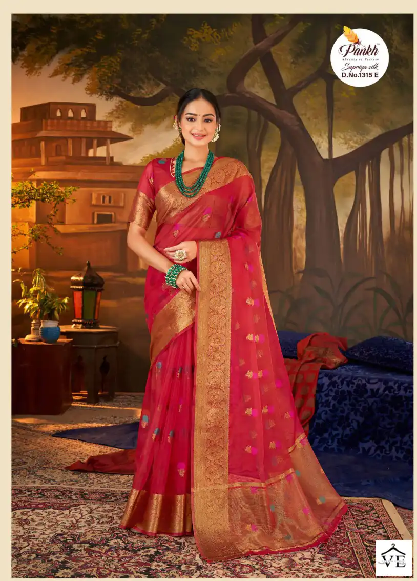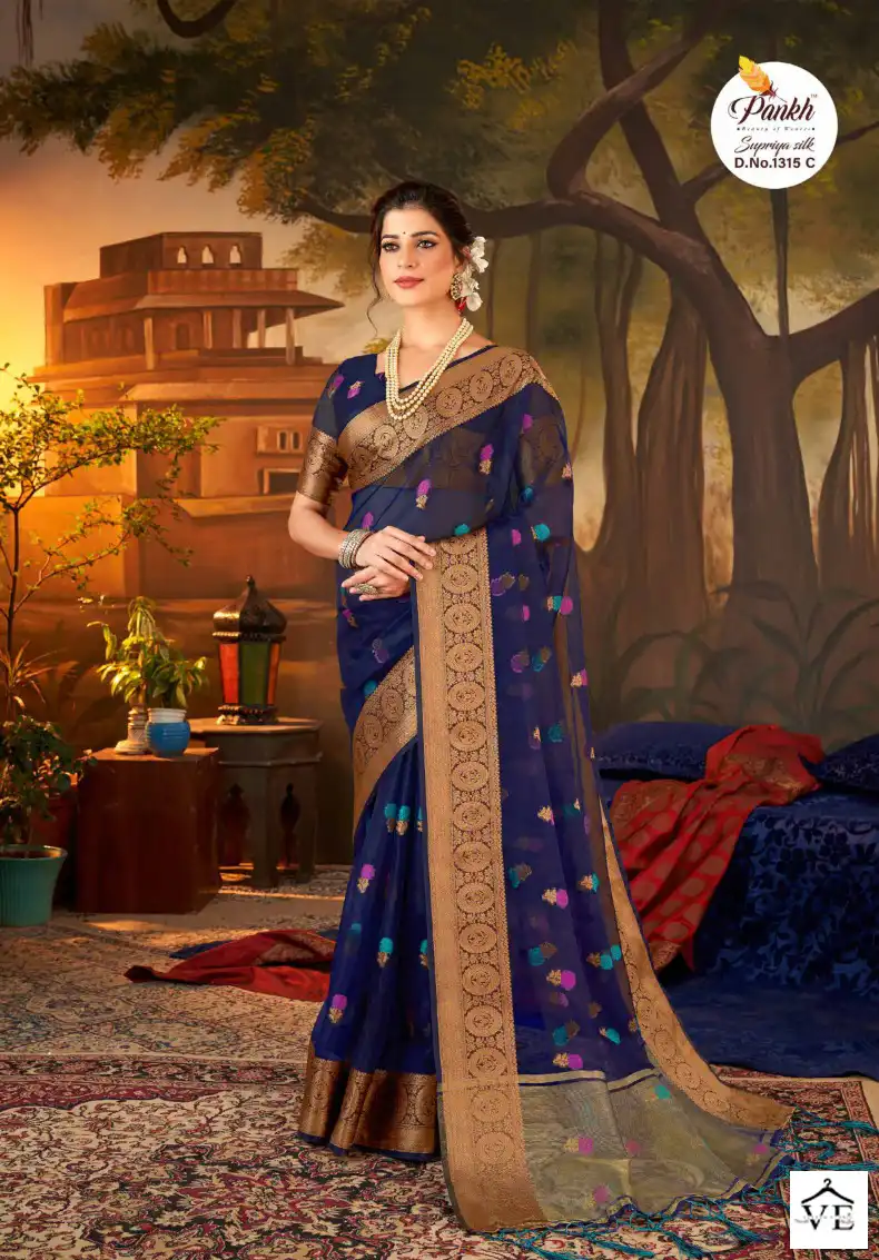 Pankh Supriya Silk Vol 1 Organza Silk Wholesale Sarees Catalog 8 Pcs. We deal in Kurtis, Sarees, Dresses Materials, Leggings, and Designer Salwar Kameez.