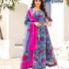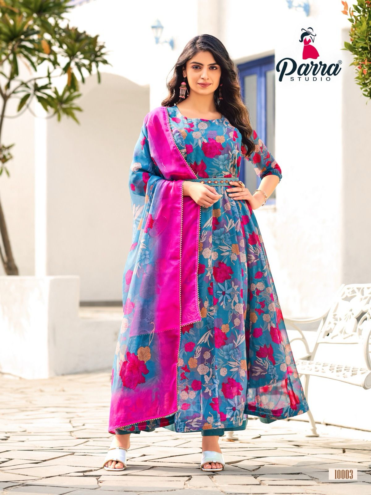Upgrade your ethnic wear collection with this set of Soft Organza Digital Print Tops paired with Silk Bottoms. These outfits exude elegance and are perfect for various occasions, from weddings to festive celebrations.