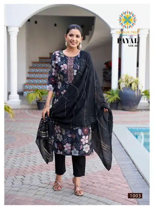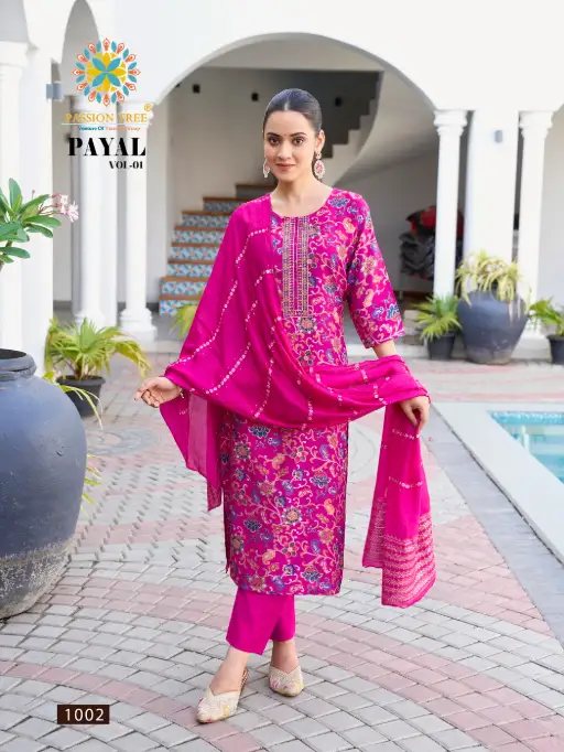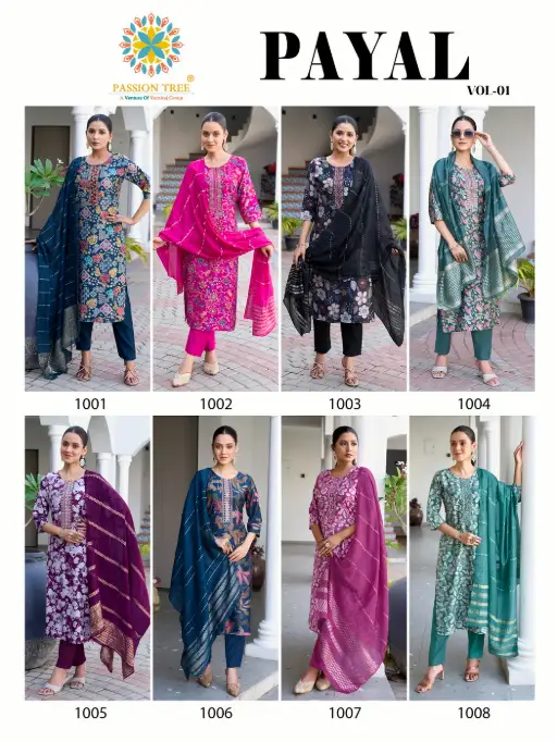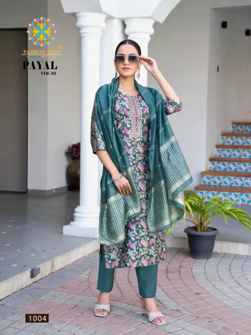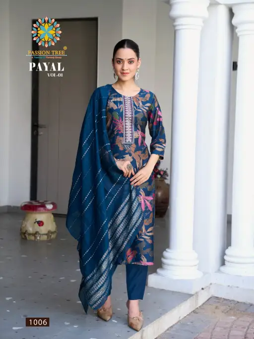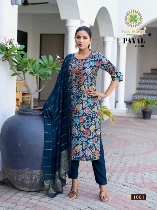 Passion Payal Vol-1 Embroidery Wholesale Kurti With Bottom Dupatta.