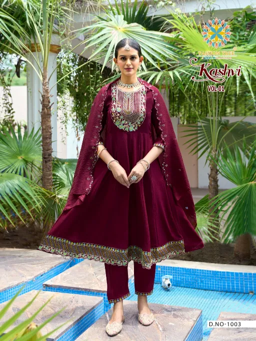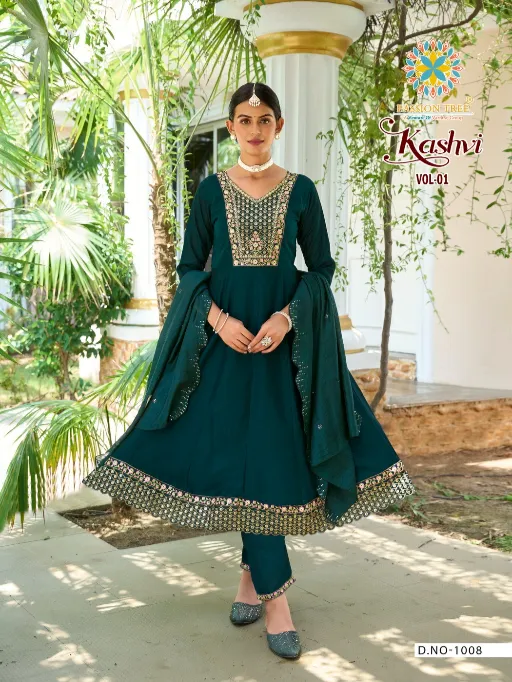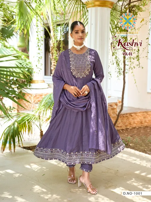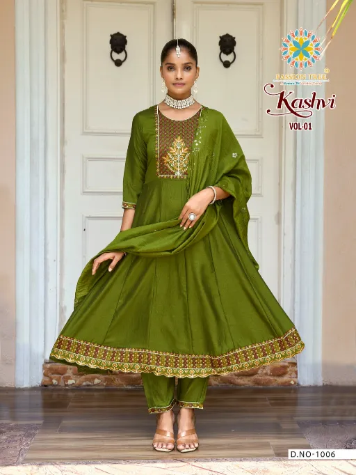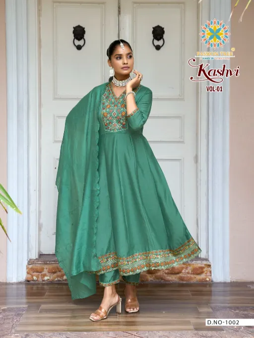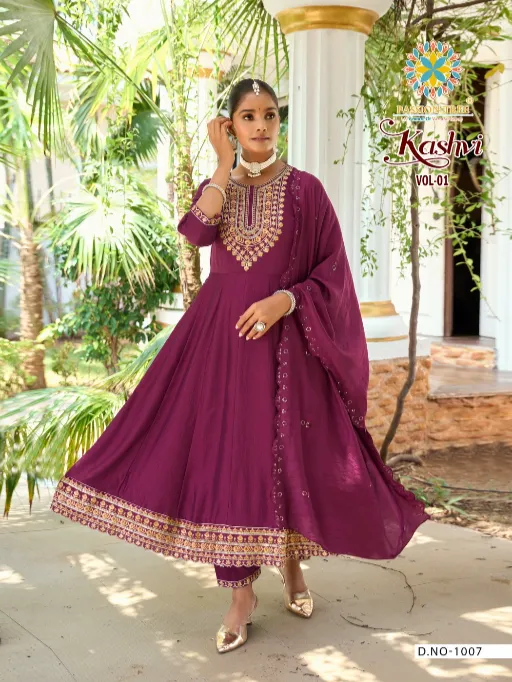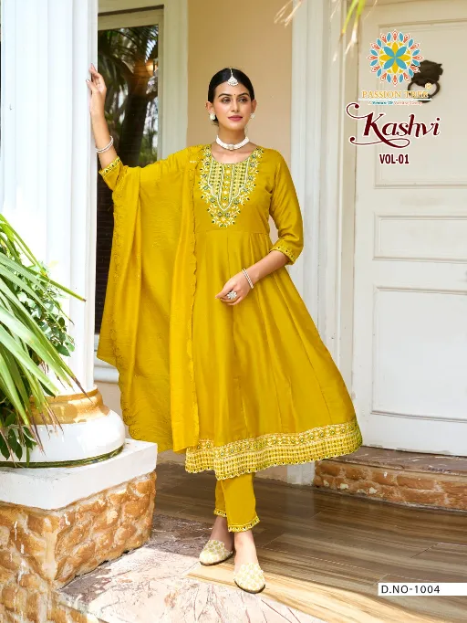 Passion Tree Kashvi Vol 1 Wholesale Vichitra Silk Anarkali Kurti With Dupatta.