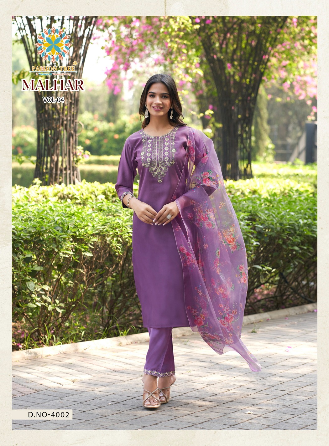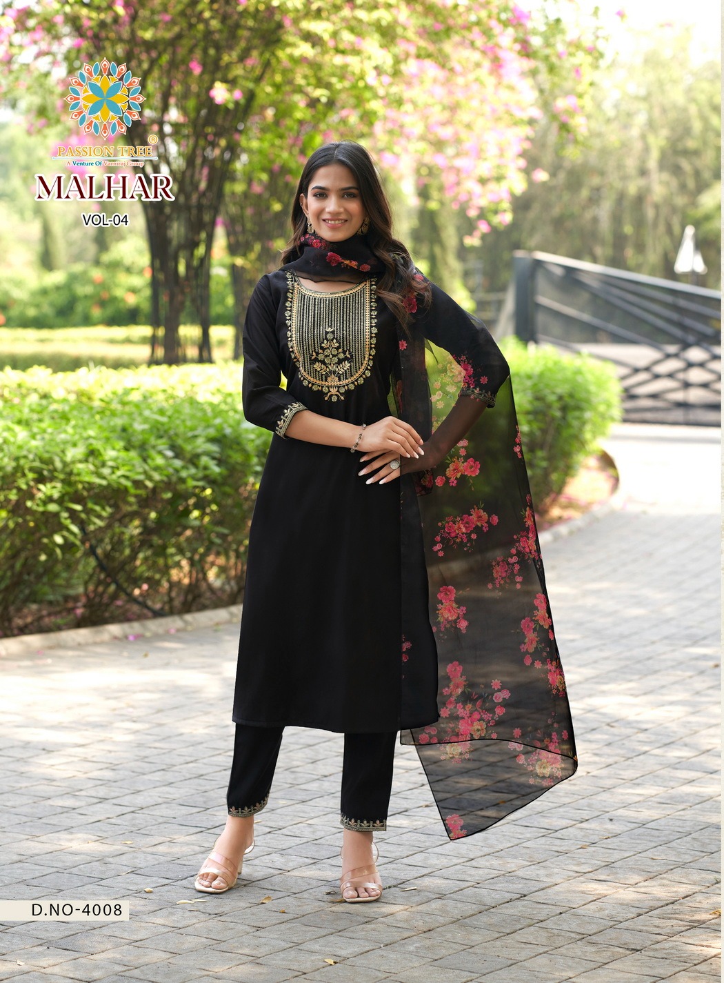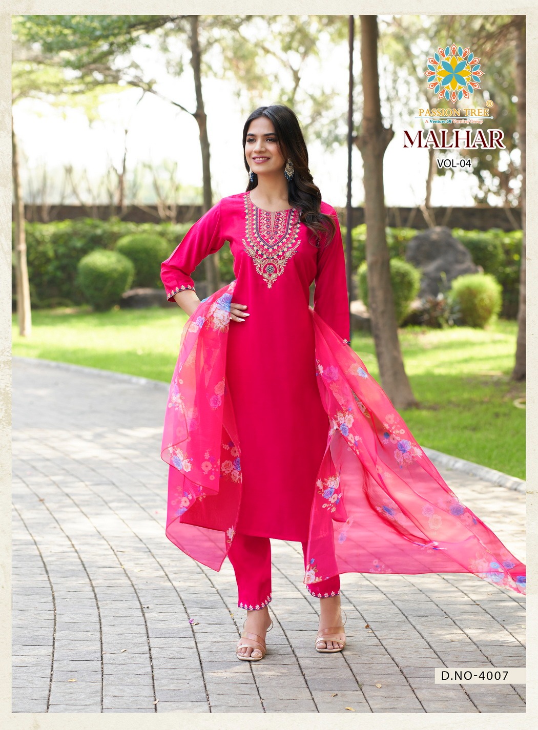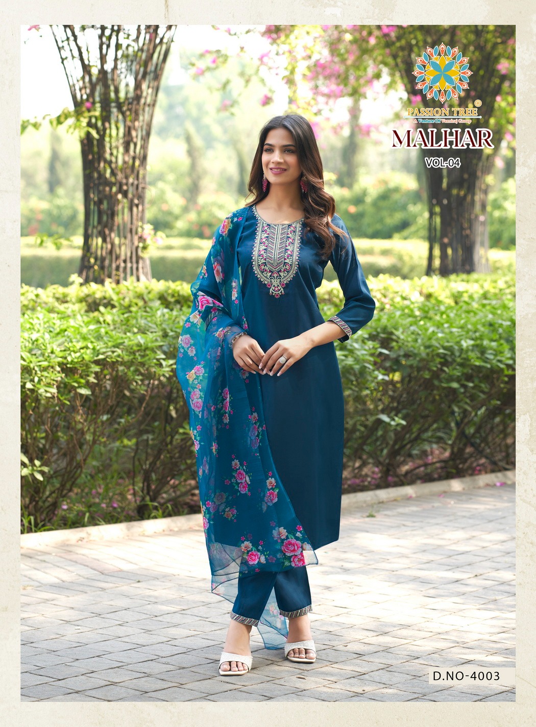 Passion Tree Malhar Vol-4 Roman Silk Straight Kurti With Bottom Dupatta Wholesale.