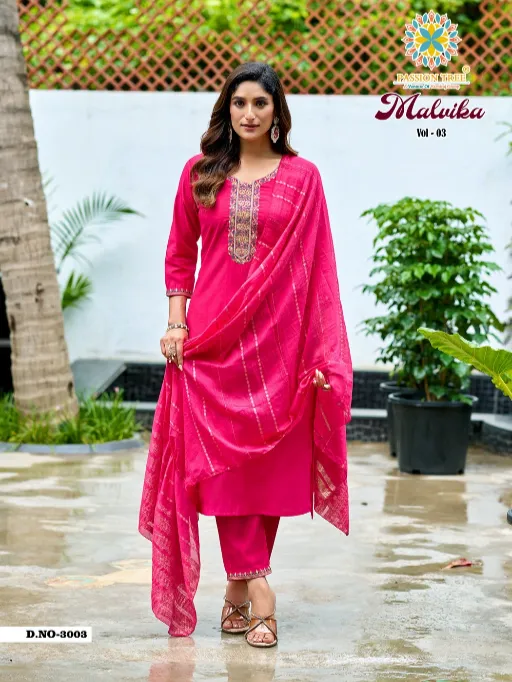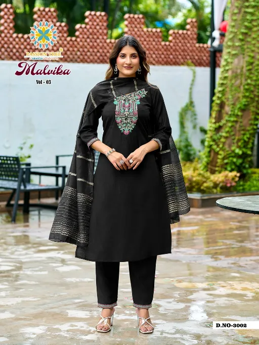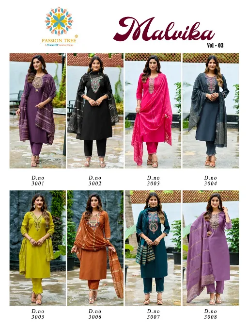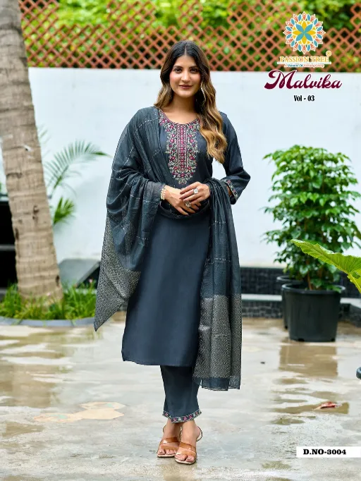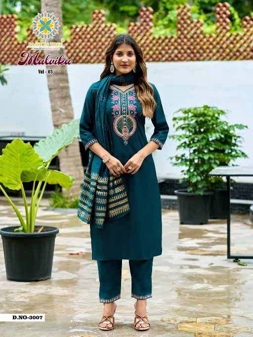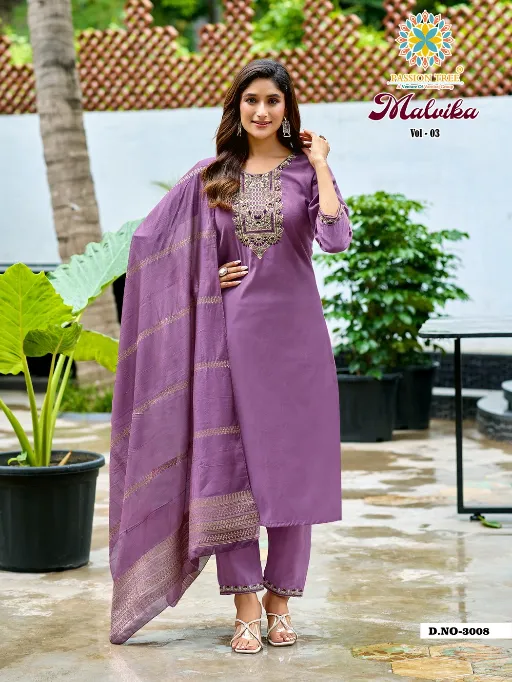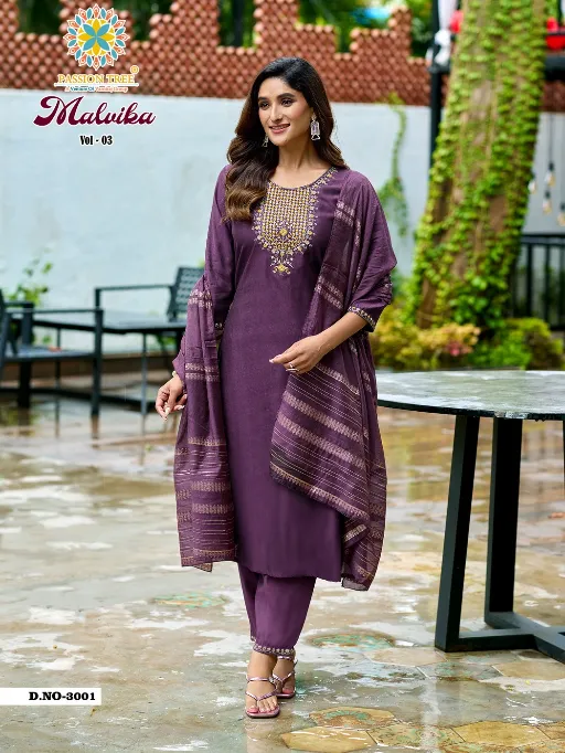 Passion Tree Malvika Vol 3 Embroidered Kurti With Bottom Dupatta Catalog.
