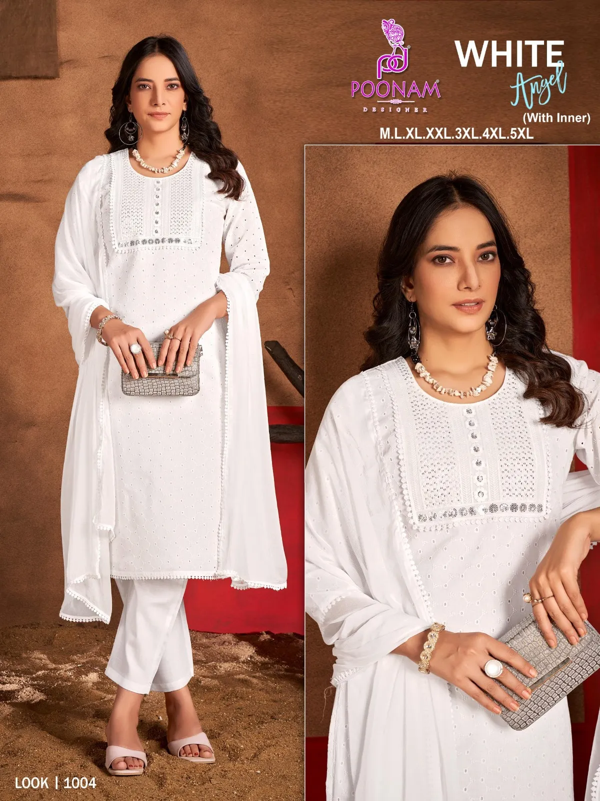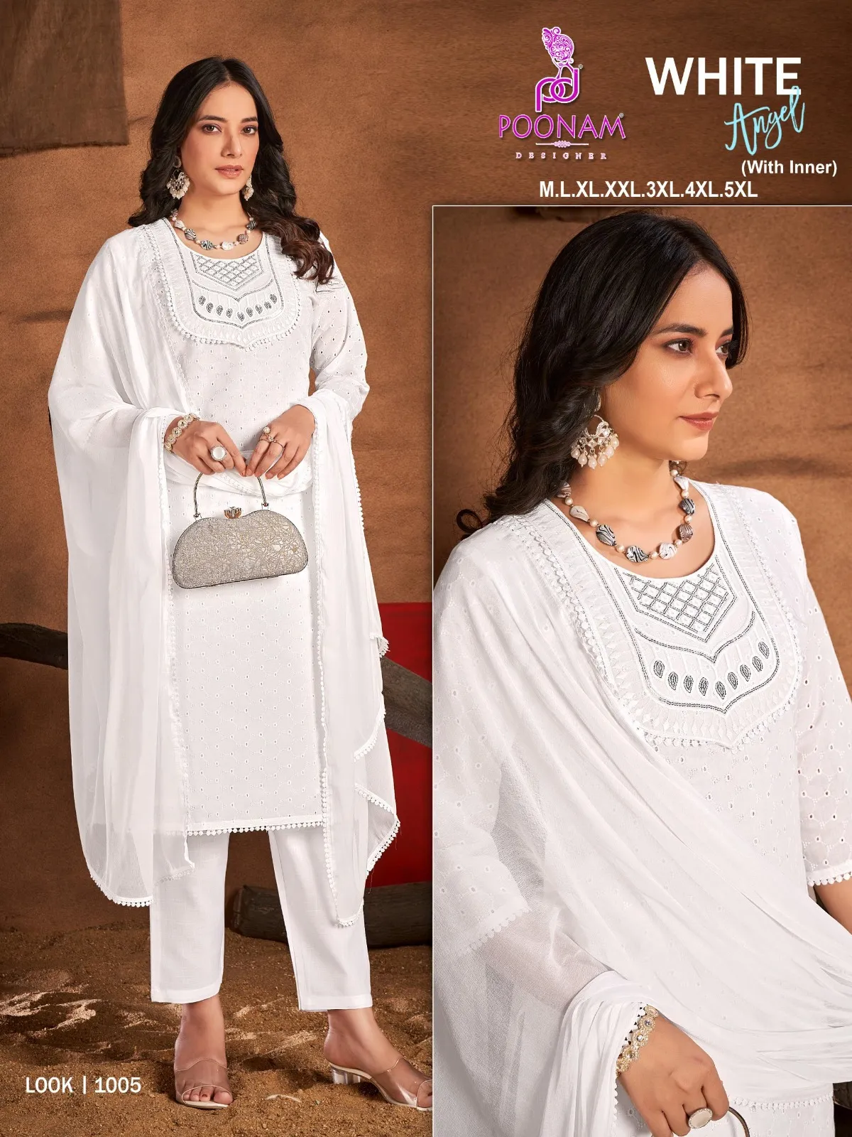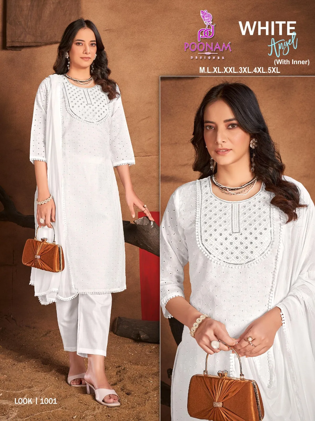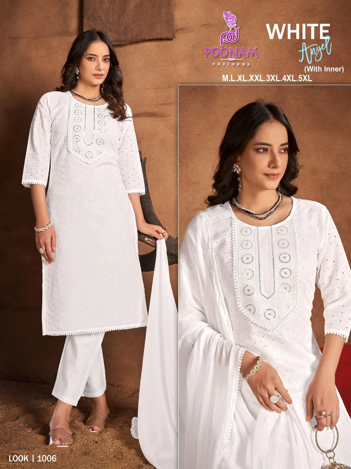 Poonam Designer White Angle Cotton Wholesale Readymade Salwar Suit Collection