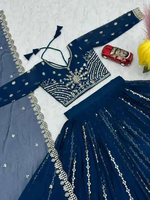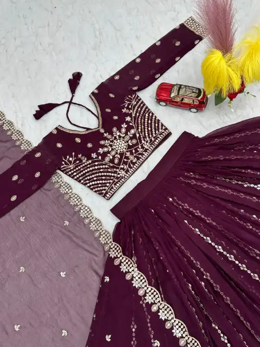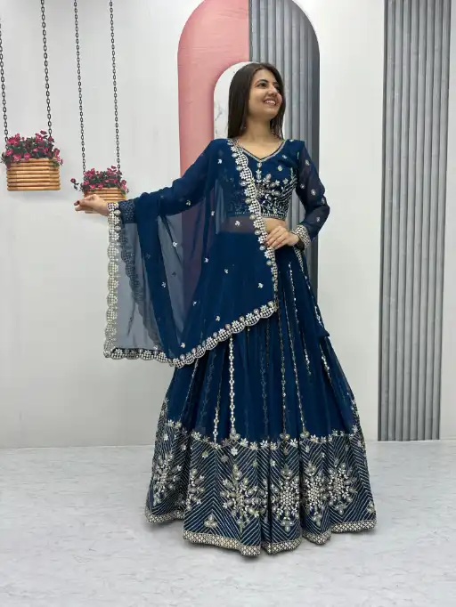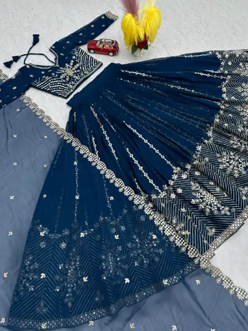 Buy Prisha Fashion PF-036 fully stitched designer georgette lehenga set with heavy embroidery and sequin work at the best wholesale price.