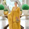 Product Name: Prm Hamsafar Organza Crush Handwork Designer Kurti Pant Dupatta Set