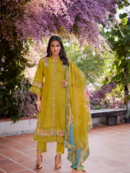 Style: Fully Stitched Designer 3-Piece Set (Kurti + Pant + Dupatta)