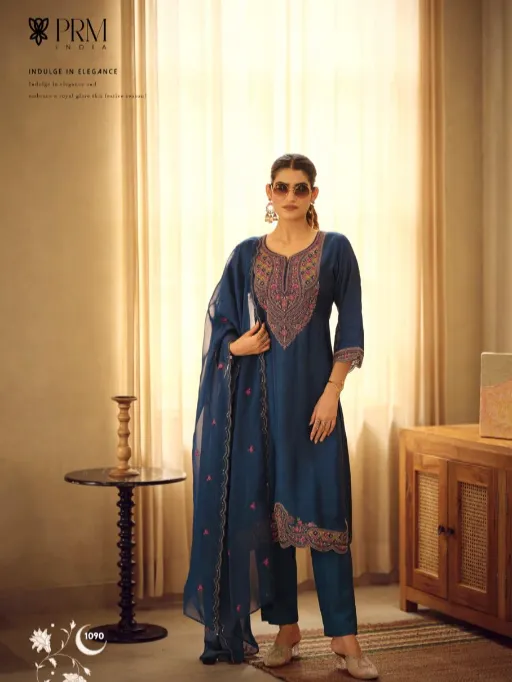 Prm Moh Wholesale Russian Silk Embroidery Work Kurti With Bottom Dupatta