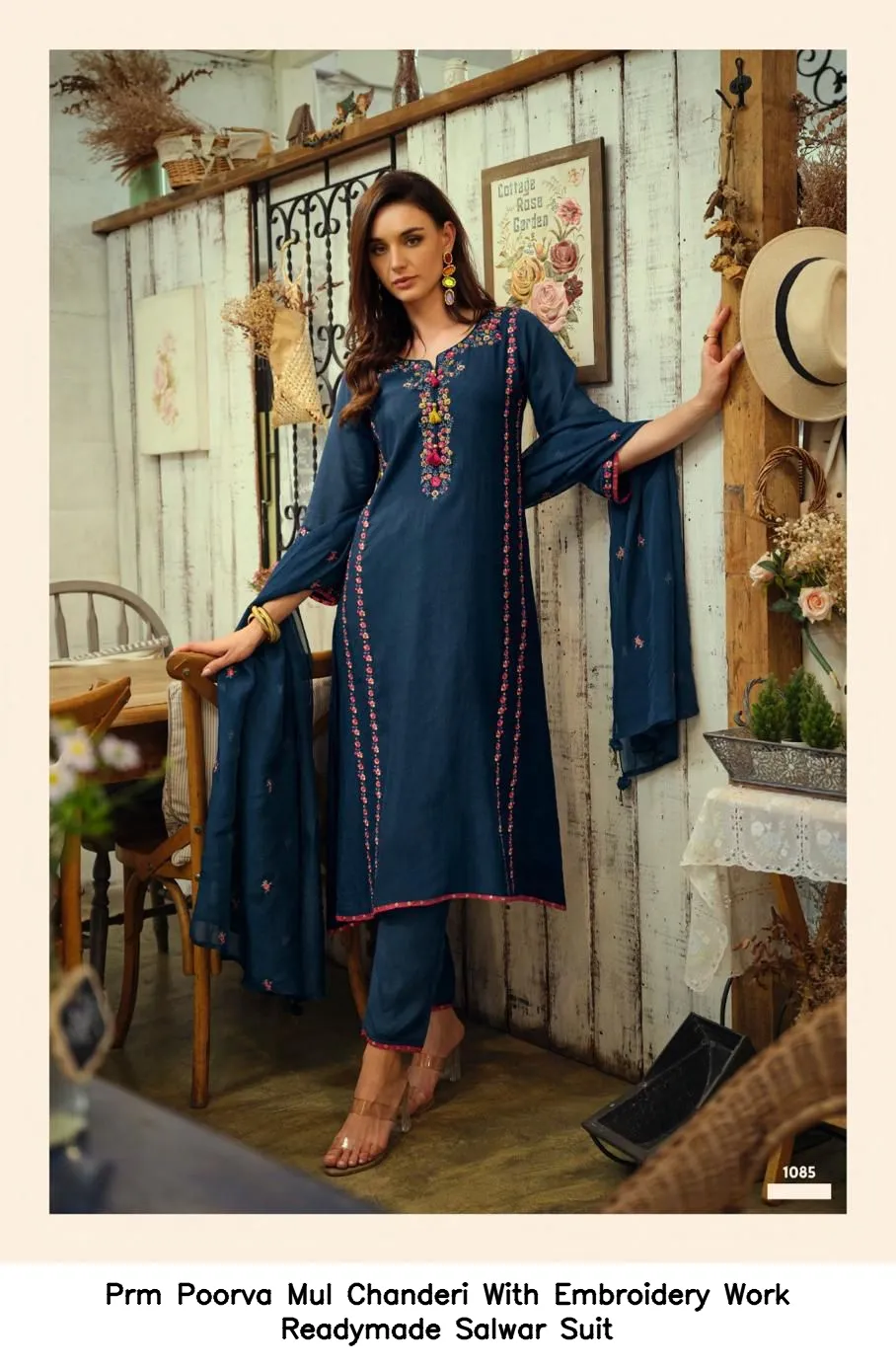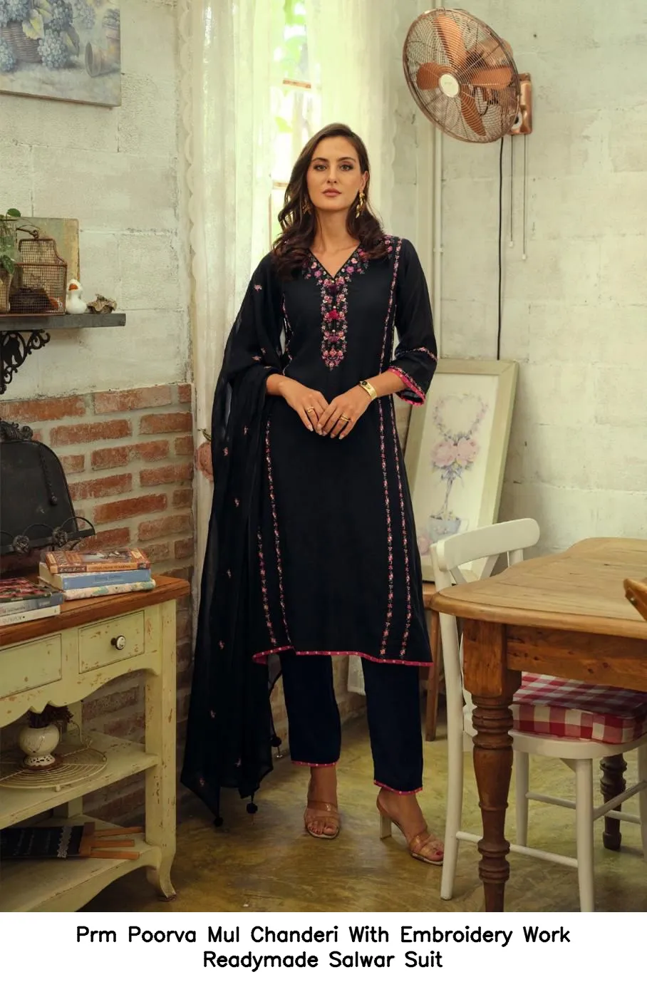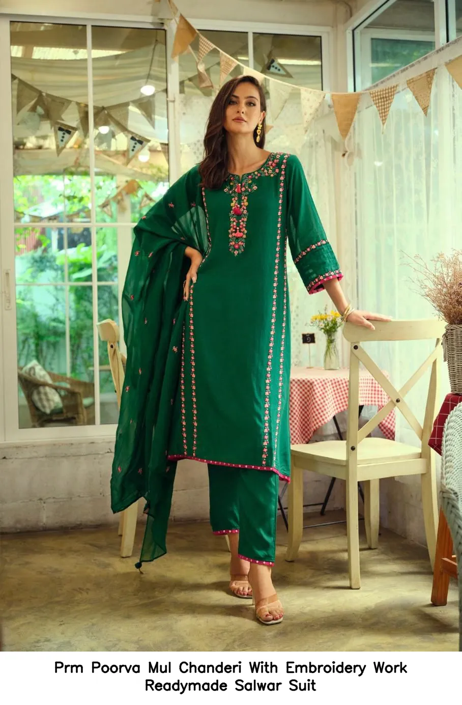 Prm Poorva Mul Chanderi With Embroidery Work Readymade Salwar Suit