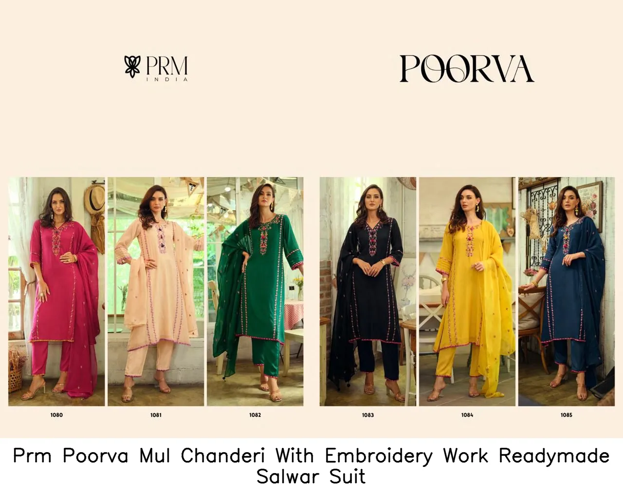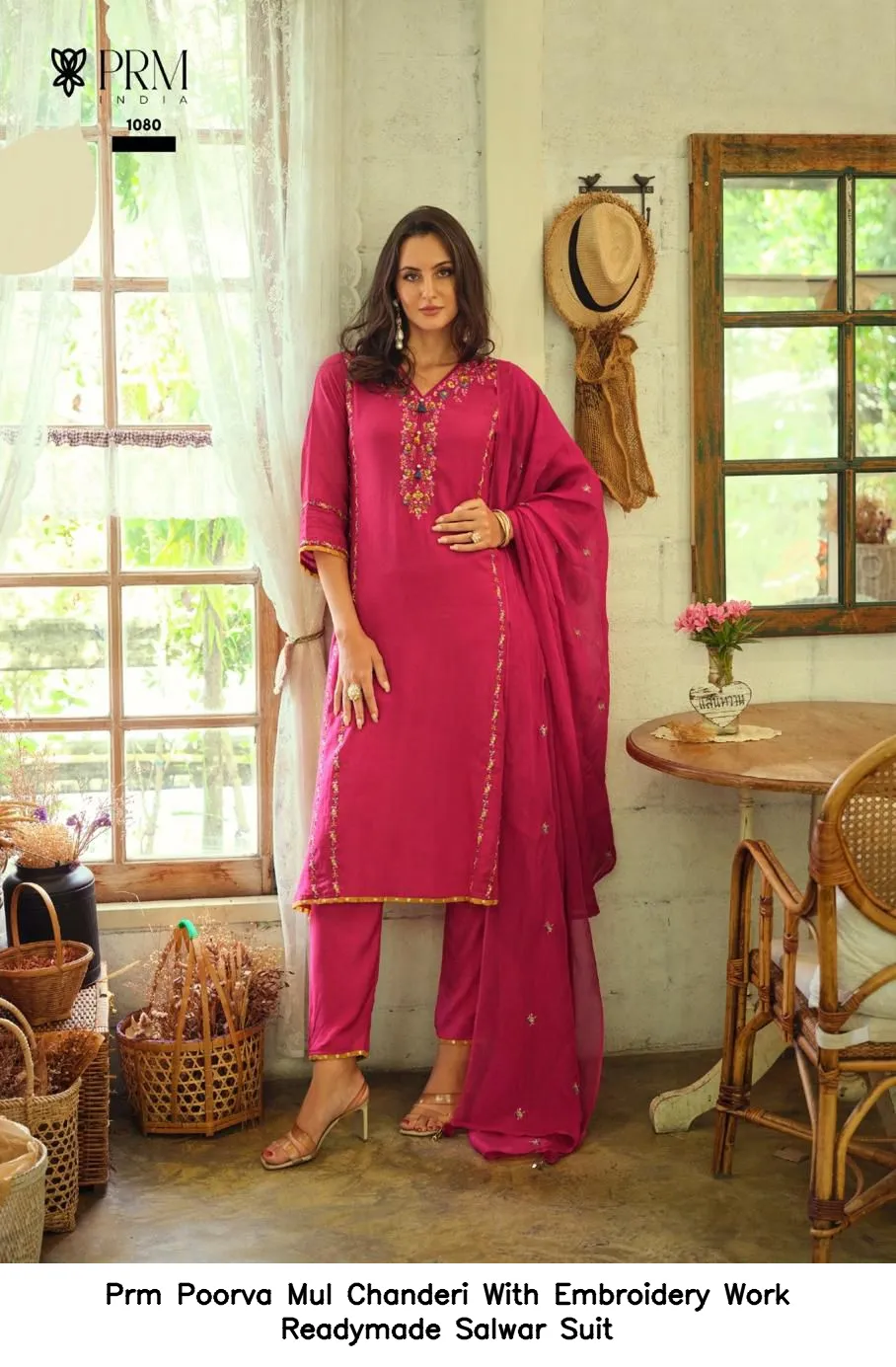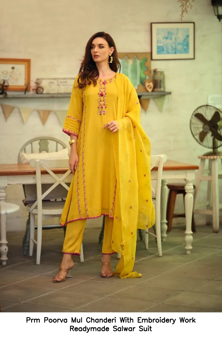 Prm Poorva Mul Chanderi With Embroidery Work Readymade Salwar Suit