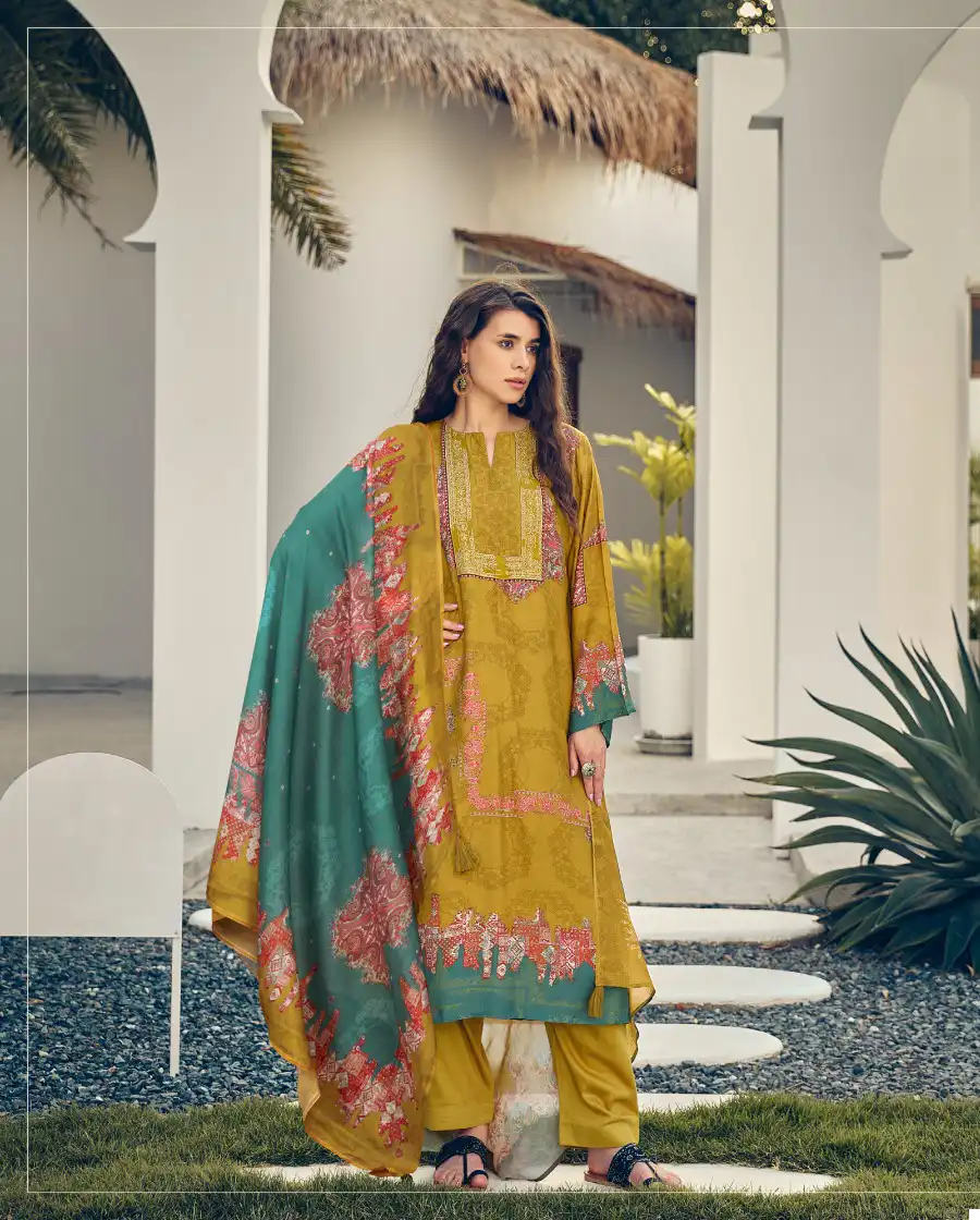 - Luxurious Fabric: Crafted from premium Pure Musline Silk, the ensemble offers a luxurious feel against the skin, ensuring comfort and breathability throughout the day.