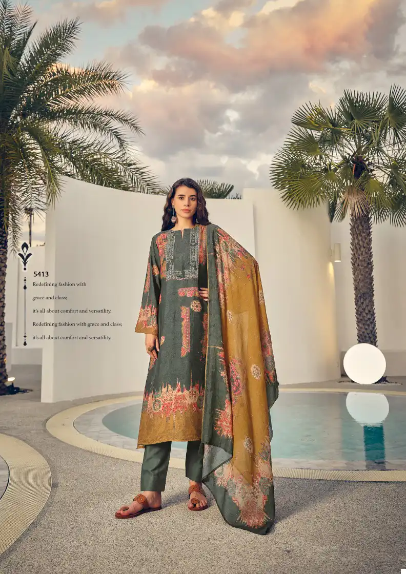 - Fabric: Immerse yourself in the sumptuous feel of Pure Musline Silk, adorned with captivating digital prints and intricate Khatli work on the top. The bottom and dupatta also feature Pure Musline fabric, ensuring a cohesive and opulent ensemble.