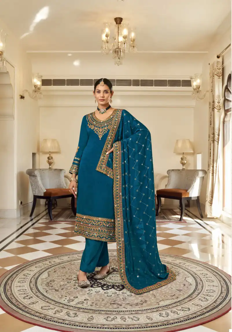 Pure Vichitra With Heavy Embroidery Work |