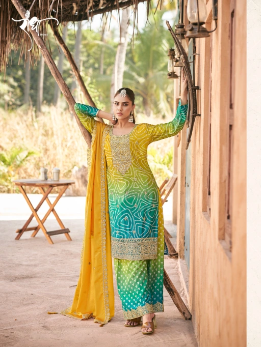 Buy Radha Trendz Rangeen Premium Chinon Designer Sharara Suit.at a wholesale rate.